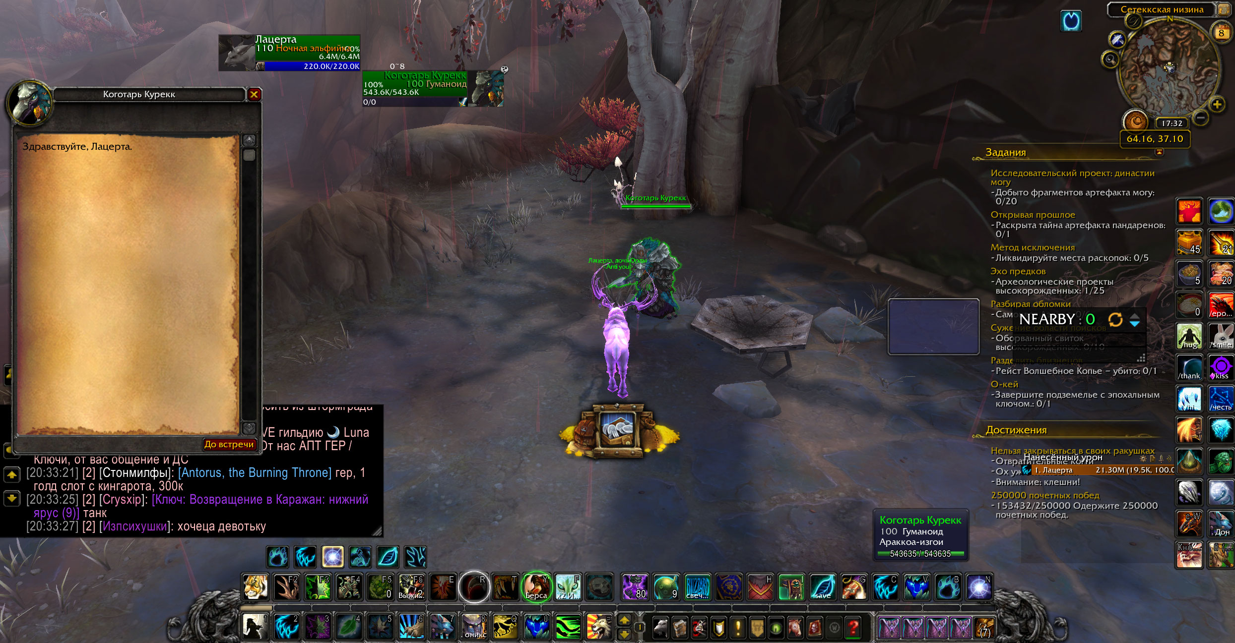 | Description | Застопорилось прохождение цепочки https://www.wowhead.com/ru/achievement=8925/%D0%BC%D0%B5%D0%B6%D0%B4%D1%83-%D0%B0%D1%80%D0%B0%D0%BA%D0%BE%D0%BC-%D0%B8-%D0%BD%D0%B0%D0%BA%D0%BE%D0%B2%D0%B0%D0%BB%D1%8C%D0%BD%D0%B5%D0%B9#comments Сдала этому нпс https://www.wowhead.com/ru/quest=35011/%D0%BA%D0%BE%D1%80%D0%BE%D0%BB%D1%8C-%D1%81%D0%B0%D0%BC%D0%BE%D0%B7%D0%B2%D0%B0%D0%BD%D0%B5%D1%86 он же должен дать след. кв https://www.wowhead.com/ru/quest=35013/%D0%B4%D0%B0%D1%80-%D0%BB%D0%B8%D1%82%D0%B8%D0%BA но он молчит | ||||