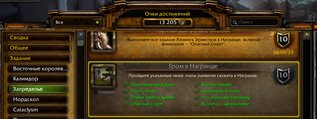 | Description | Выполнил все задания в Награнде, все критерии ачивки получил, но само достижение " Гром в Награнде" не дается | ||||