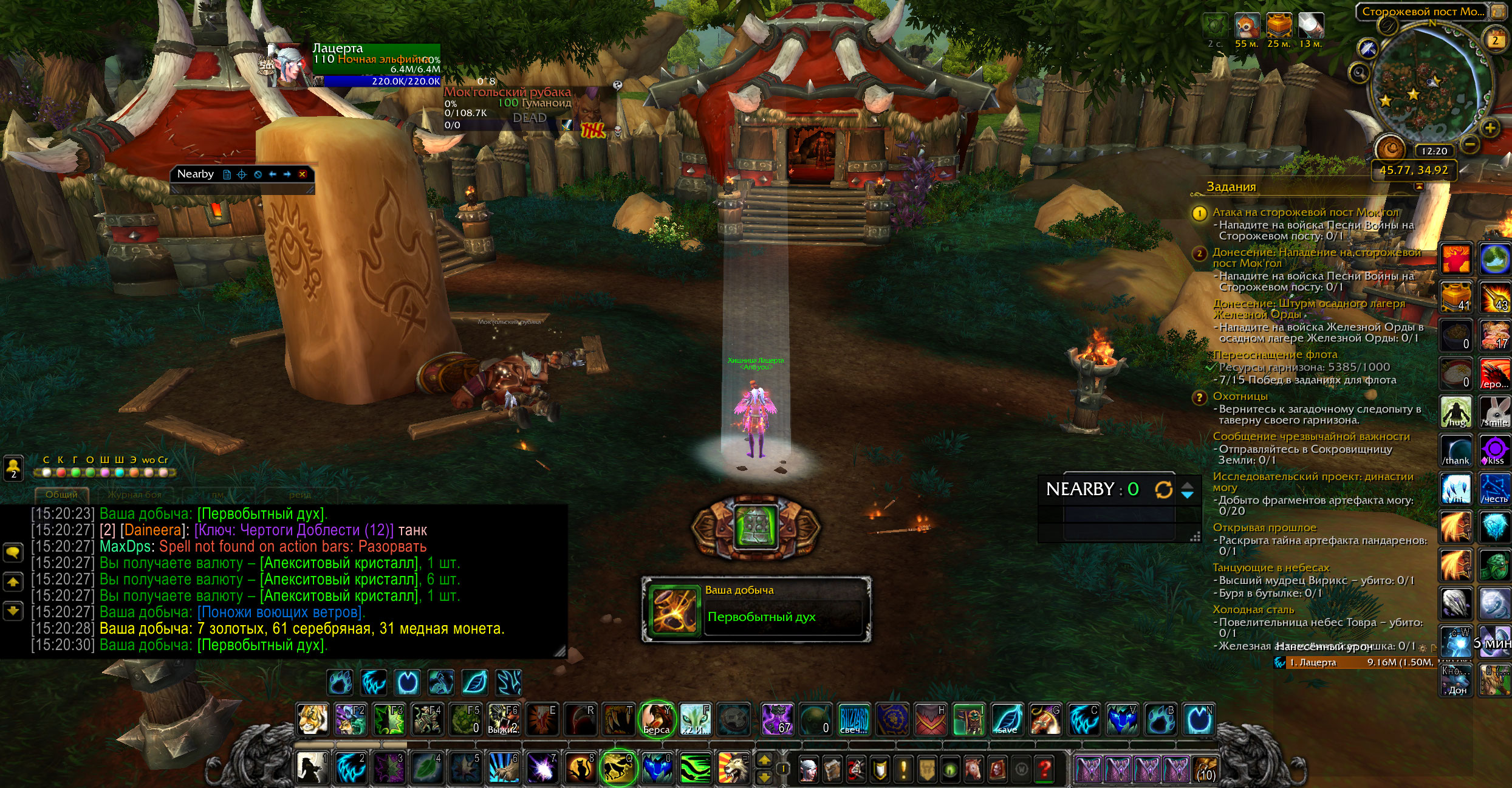 Тут, к сожалению, всё по-прежнему.. полосы процентов нет. Квесты беру через нпс с донесениями, потому что на карте они появляются не каждый день, а я их отменяла и брала заново много раз WoWScrnShot_110223_152034.jpg (995,792 bytes) |