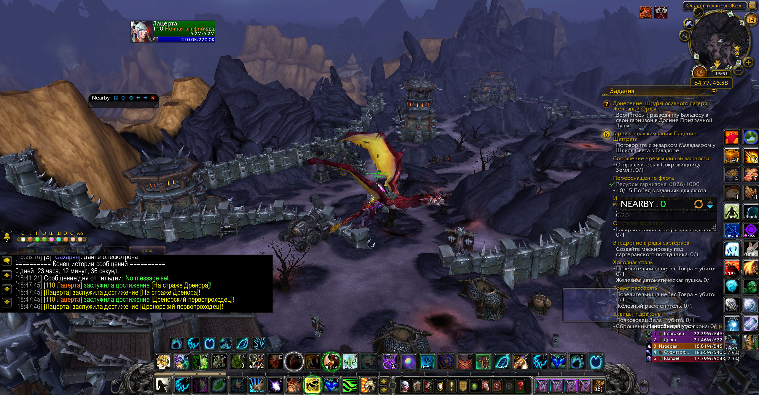 Было бы круто, спасибо! Достаточно часто встречаю игроков на Дреноре, контент там интересный, гарнизон развивать и маунтов/питомцев/игрушки собирать достаточно увлекательно ) Может, это поможет в статистике: мой товарищ, он, кстати, из Орды (таурен, если важно), смог сейчас сделать всю ачиву https://www.wowhead.com/ru/achievement=9564/%D0%BD%D0%B0-%D1%81%D1%82%D1%80%D0%B0%D0%B6%D0%B5-%D0%B4%D1%80%D0%B5%D0%BD%D0%BE%D1%80%D0%B0 у него были все квесты, и прогресс. Он помогал мне проверять эти квесты, сам полёты ещё не делал. Получается, начал прохождение с этих квестов - и всё получилось) |