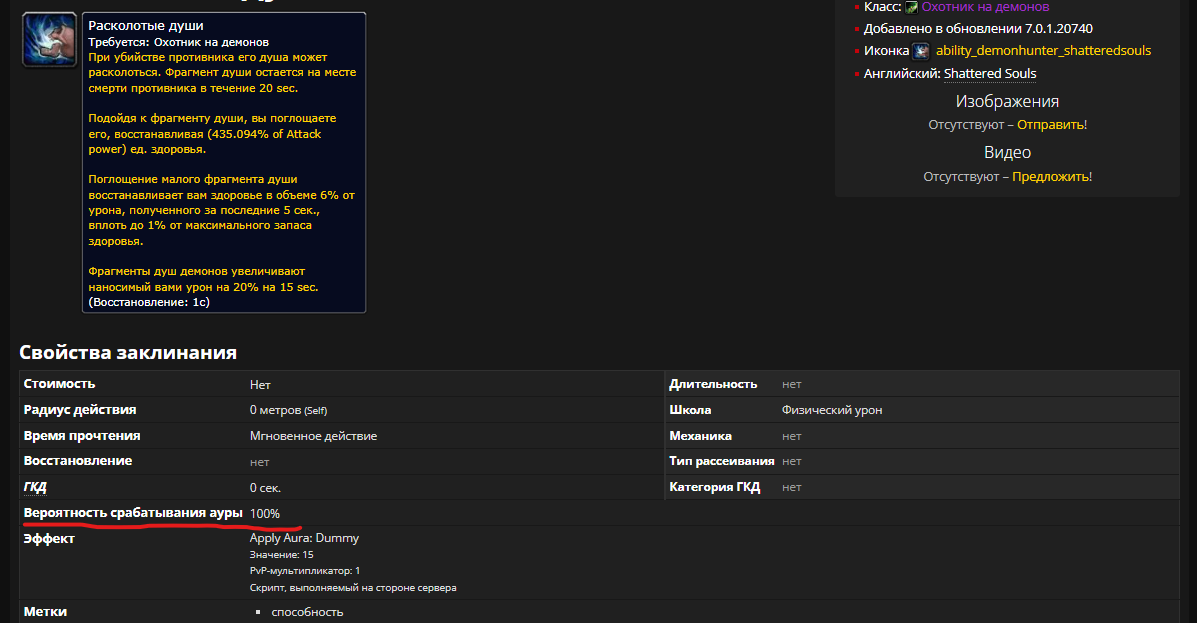 Из ваших слов: Что на офе и что у нас, шанс прок ауры равен 100%. У ауры есть одна особенность, она триггерится если таргет дает игроку экспу или хонор, и если душа не прокает, скорее всего какой-то из мобов не отвечает этим требованиям. Око Азшары: Офф: https://www.youtube.com/watch?v=vqRZZQjpyUA&t=400s На 6:40 мобы являются нейтральными и никакого опыта и т.д. не дают. Души с них не выпадают. На 6:10 эти же мобы призываются боссом, они умирают и душ нет. Дальше по инсту видим как умирают крабы, и с них тоже редко когда 1-3 души выпадают. uWoW: https://www.youtube.com/watch?v=bRVYq5ehspY На 3:30 нейтральные капли умирают (те которые не дают опыта и т.д.) и души с них падают. На 15:10 мобы умирают даже не от урона, а от сдувания и дают дх души. Дальше в том же репертуаре, 25:20 видим костыль - молния лупит в трещины и появляются души, даже разговор об этом, как и о крабиках на платформе. То, что вы пишите, не соответсвует фактам которые отображены на видео. И вот еще примеры: https://www.youtube.com/watch?v=Hj5ARwGzGEo&t=116s Совет: Мобы умирают, редко когда выпадает душа. https://www.youtube.com/watch?v=TwxHWz71RHk&t=149s Портальщица: Бесы умирают, иногда дропается душа. https://www.youtube.com/watch?v=QNIA4UJ6N0k Эонар: Пример с большим количеством мобов. Души также падают лишь иногда. https://www.youtube.com/watch?v=Jxddpw0cgx0 Вариматрас: На 0:55 моб убивается, души с него нет, и по ходу боя, то прокнет, то нет. Так что ваше обьяснение некорректно, и очень похоже на костыльную механику, что подтверждают предоставленные факты. |