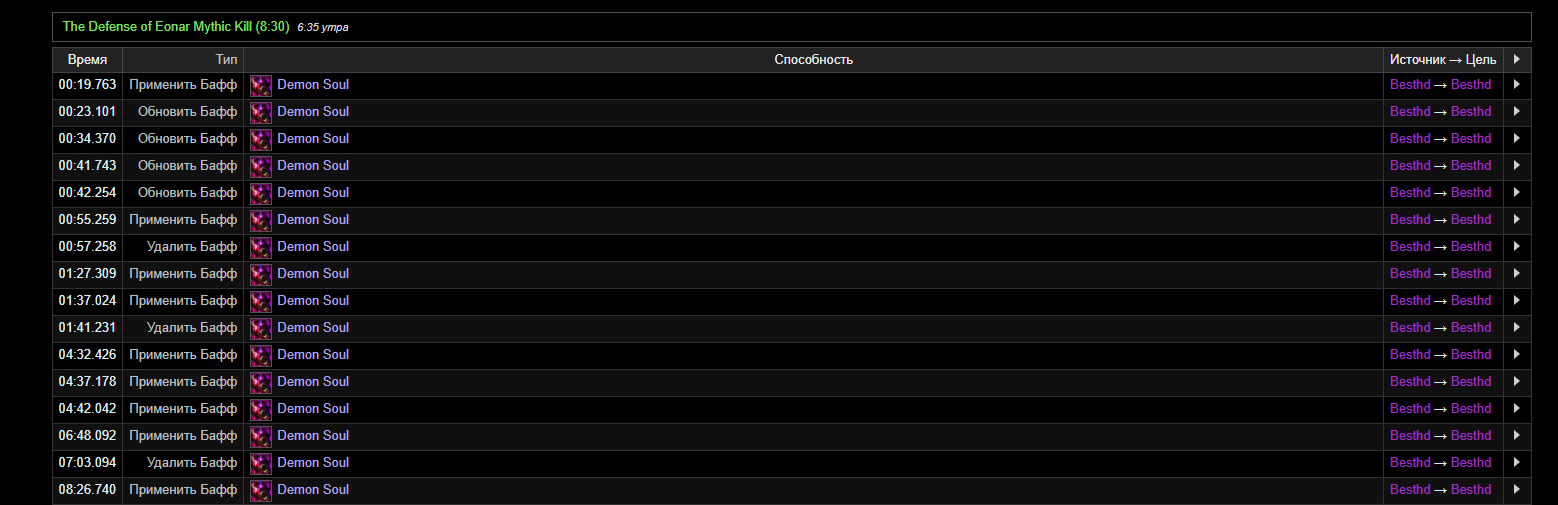 Ну и к стати да ... https://ru.warcraftlogs.com/reports/GhtjNBYAV3yXgKDR#fight=17&type=auras&view=events&source=16&ability=163073 |
