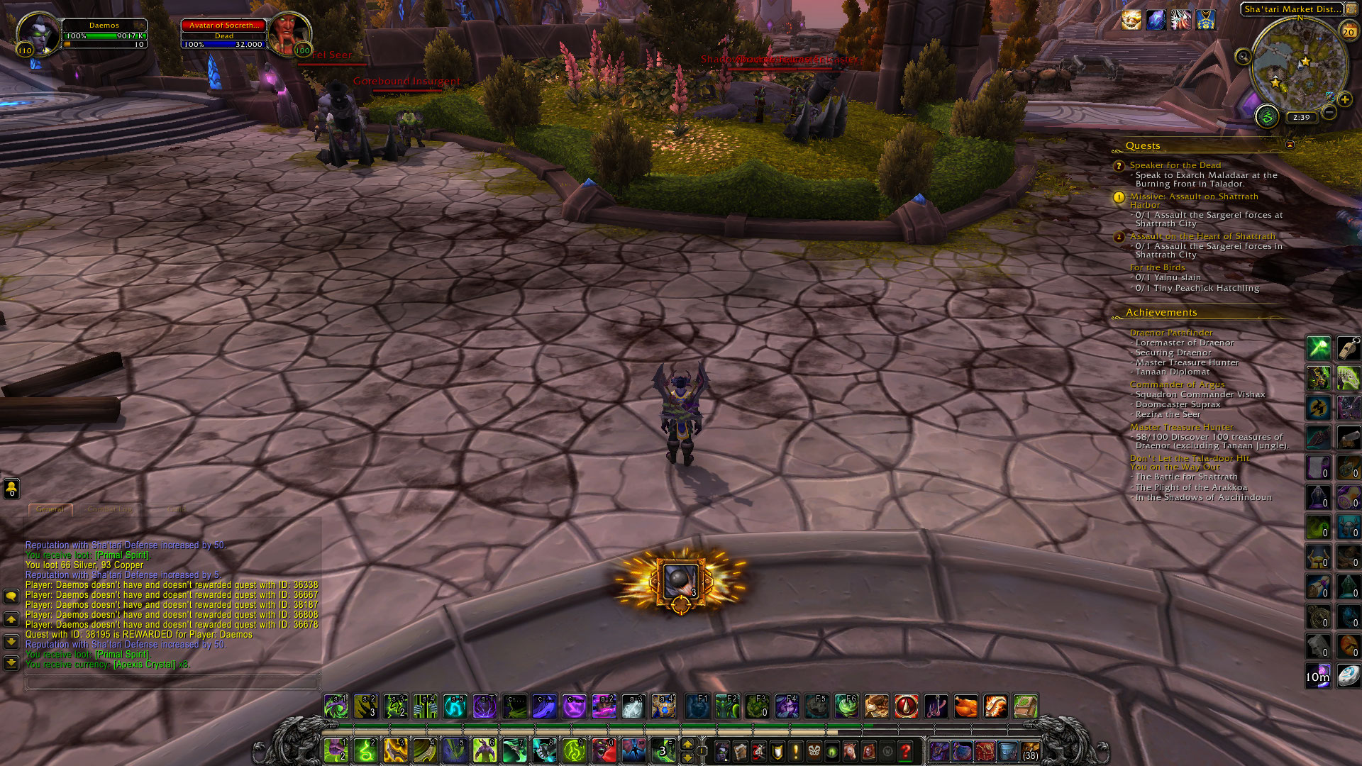 | Steps To Reproduce | Buy "Southing Missive: Shattrath Harbor" from garrison quartermaster. Activate missive. Travel to Shattrath Harbor and kill mobs present, burn bodies, interact with other objects. | ||||