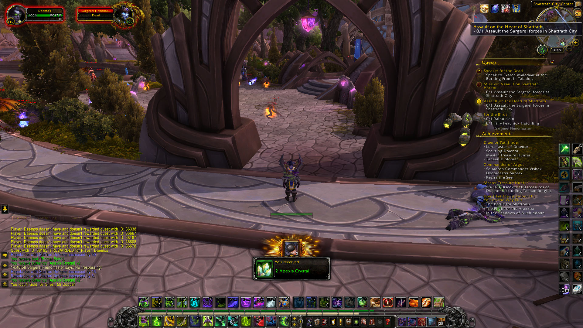 | Description | WOD Pathfinder achievement "Securing Draenor" needs 12 area quests completed. "Assault on Shattrath Harbor" doesn't progress at all no matter what kills are made or objects interacted with. | ||||