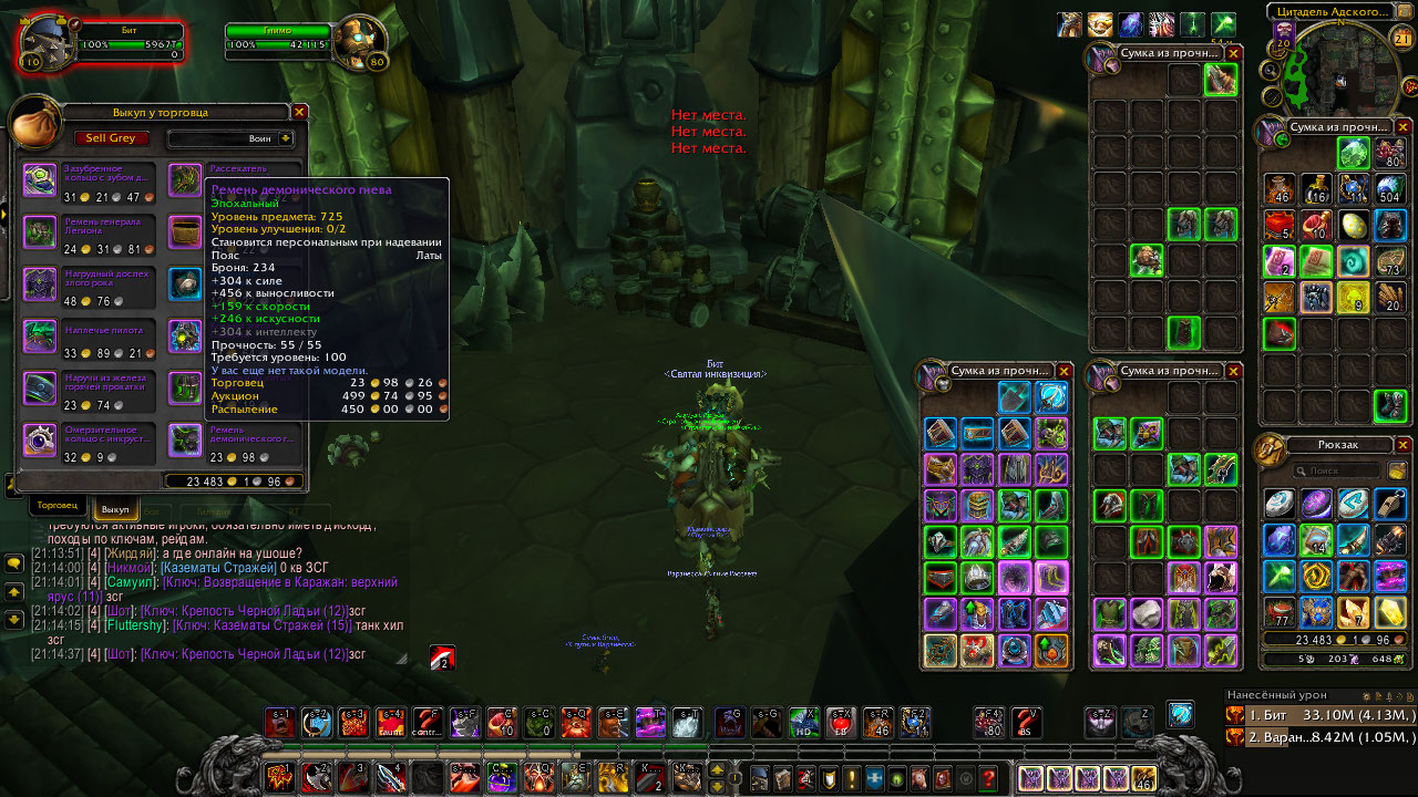 | Steps To Reproduce | в случае с банком, у меня там баджи на веще тканевые с аргуса лежали, закидываем вещи в банк, затем ПКМ на вещь чтобы забрать обратно в сумку и будет сообщение "нет места" в случае с выкупом проданных вещей, продаём кучу не нужных вещей вендору, пробуем выкупить. | ||||