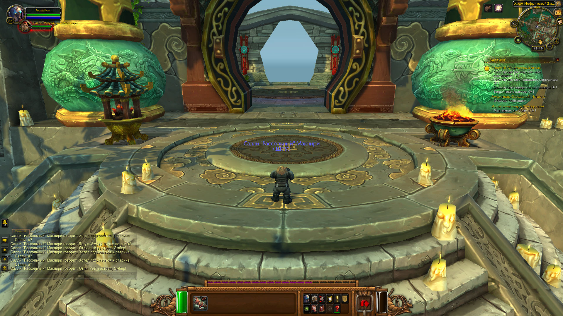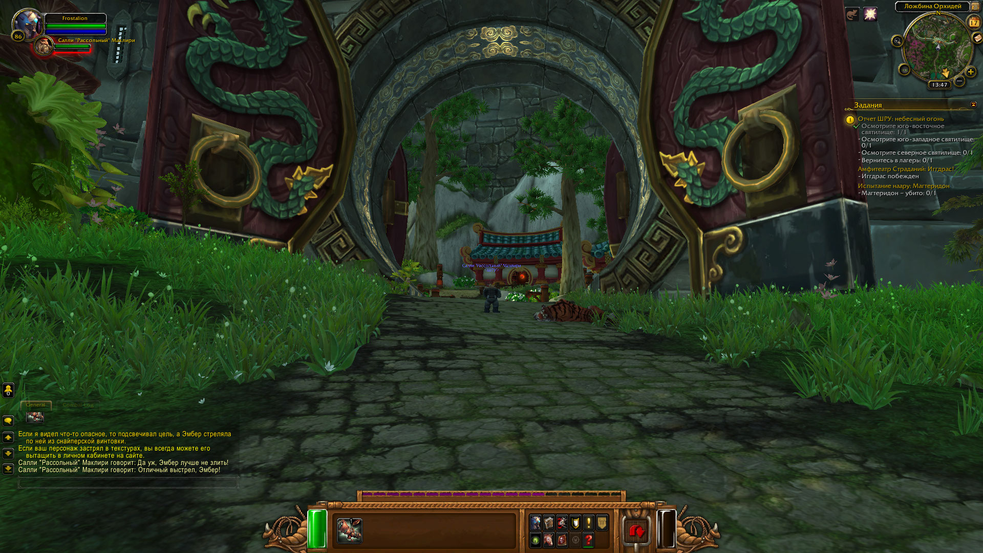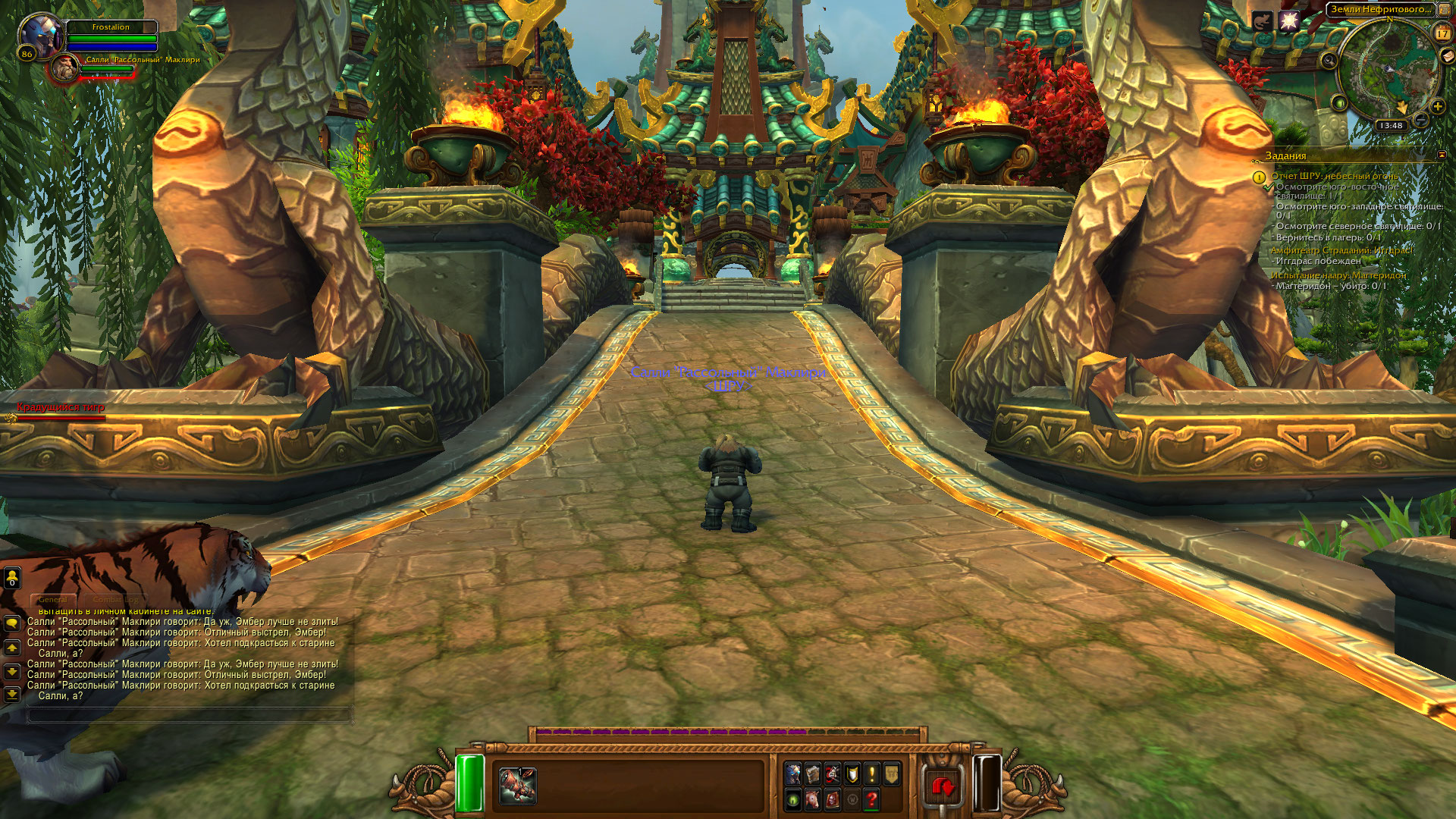 | Steps To Reproduce | После прохождения нескольких стартовых квестов Пандарии, взять у Салли квест "Отчет ШРУ: небесный огонь" в нефритовом лесу, в деревне жемчужного плавника, поговорить с ним нажав "Салли, продолжай" после чего в его теле пойти в храм нефритовой змеи и дойти до конечной локации которая находится на верху храма. | ||||