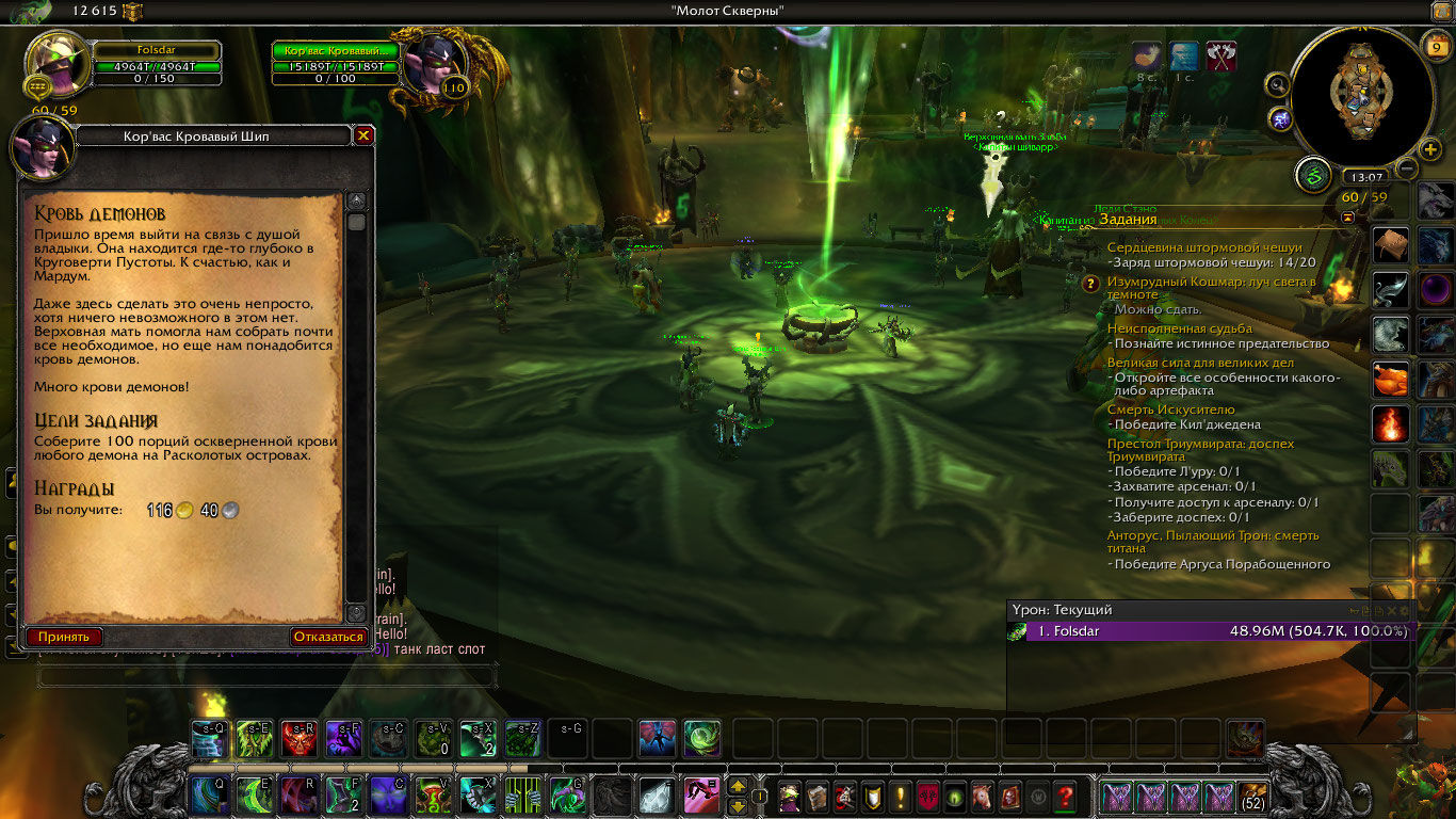 Я могу взять только квест кровь демонов. Другие- нет. Может ли существуют квесты которые начинаются в других локациях? WoWScrnShot_061219_225643.jpg (1,406,942 bytes) |