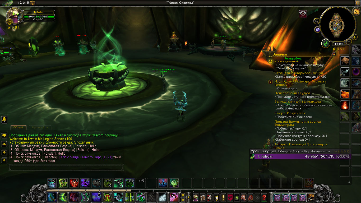 Смотрите, я все-таки побеседовала с гмом, и он сказал что могут помочь. На моей памяти (и памяти данной темы) вы играете на Ювове, поэтому вам стоит написать в http://f3.uwow.biz/topic/254394-problema-s-artefaktom-i-oplotom-kvesty-dop-taly/ эту тему. Там в самом начале есть шаблон, его нужно придерживаться. Вам нужно написать, чтобы помогли вам с квестом https://ru.wowhead.com/quest=42677, только чтобы его выдали. Дальше должно все быть намного лучше |