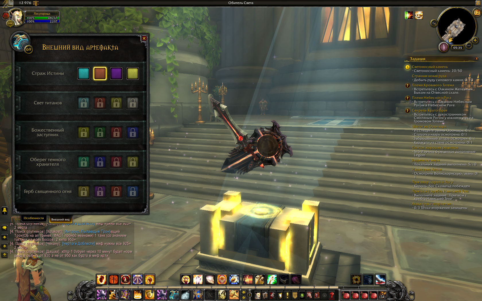 | Description | Убивала демонов в Крокууне, получила с добычи предмет, открывающий тайный облик артефакта, изучила его и получила за это достижение. Но в оплоте класса нового облика нет. | ||||