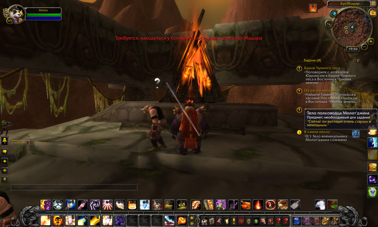 | Description | Тело военачальника Молот'джина не кидается в костёр. Нахожусь около костра и пишет "Требуется: находится у большого костра зиккурата Зул'машара". | ||||