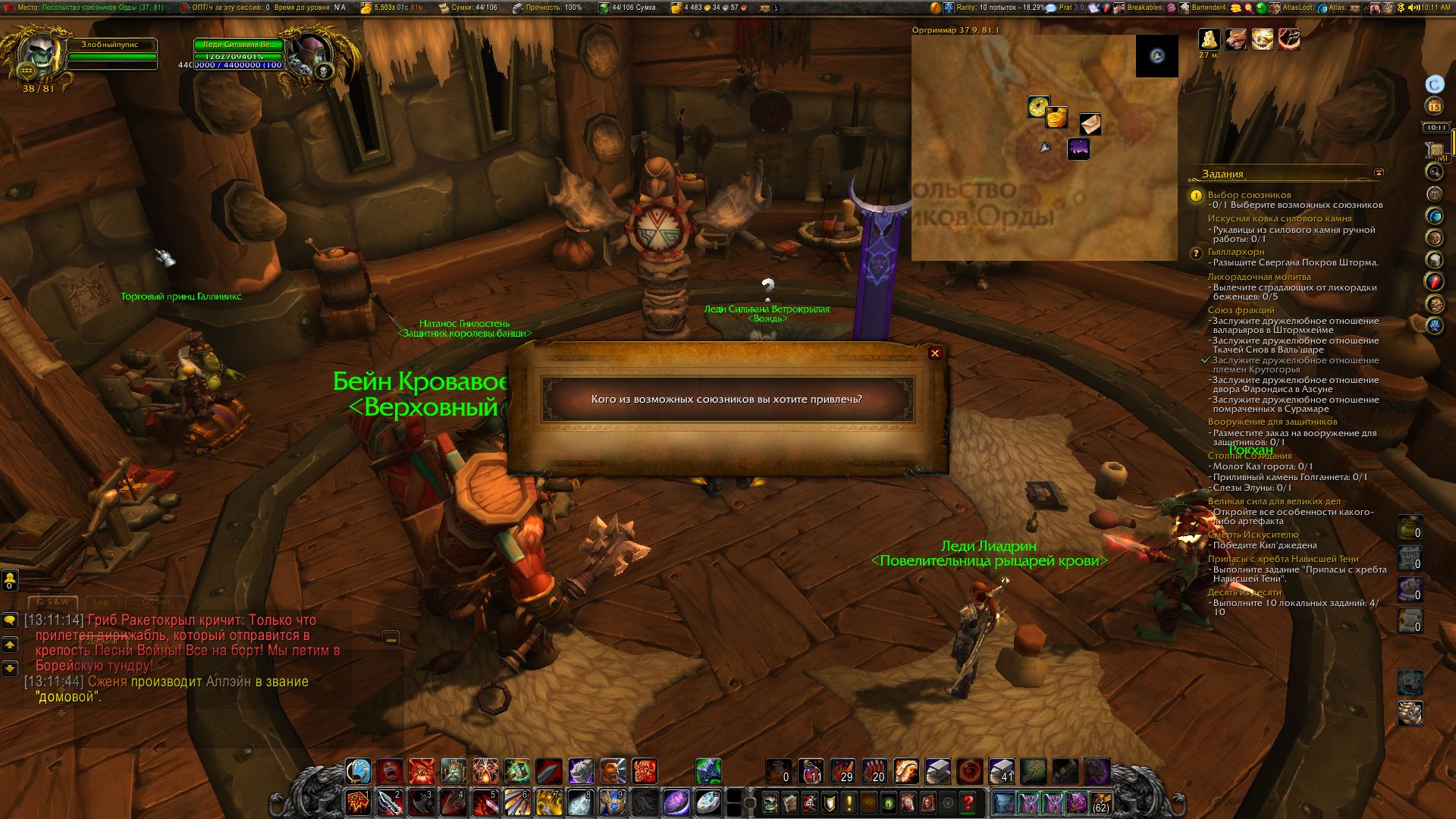 | Description | Оргримар-посольство союзников. Квест выбор союзников. поговорил с обоими-верховный вождь тауренов и с повелительницей рыцарей крови . И вместо выбора союзника выскакивает пустая рамка. см аттач | ||||
