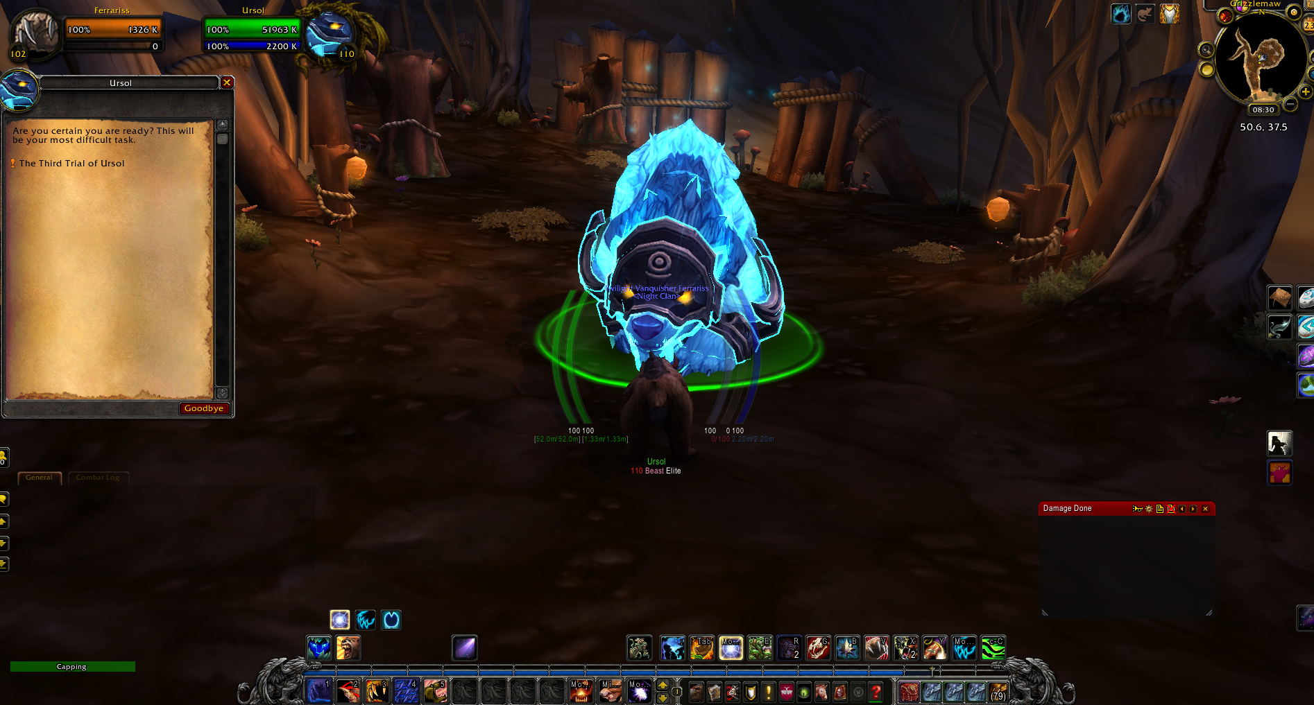 | Description | Quest: The Third Trial of Ursol https://www.wowhead.com/quest=41792/the-third-trial-of-ursol After taking quest, i should speak with blue bear (Ursol). It works fine. Then event should start. Bear is speaking for longer time, then some adds should spawn and I have to defend npc. Description of bug: After speaking with bear, nothing happens. Bear doesnt speak and no one spawns | ||||