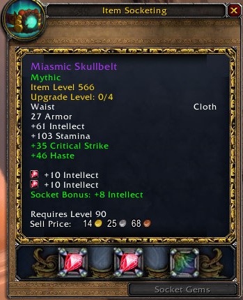 | Steps To Reproduce | Have living steel belt buckle, level appropriate belt, and gem. Use belt buckle on belt, then attempt to socket gem. Gem remains unbound/unsocketed in bags despite clicking "Socket Gems" button. | ||||