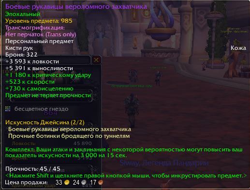 | Description | Сет из https://ru.wowhead.com/item=137397 https://ru.wowhead.com/item=137480 | ||||