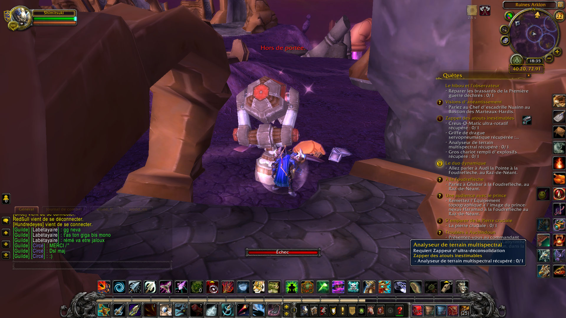 | Description | https://www.wowhead.com/fr/quest=10203/zapper-des-atouts-inestimables, quest don't work. Incant is OK, but finally "out of range". I try in different place. same problem. Impossible to valid quest Thanks | ||||