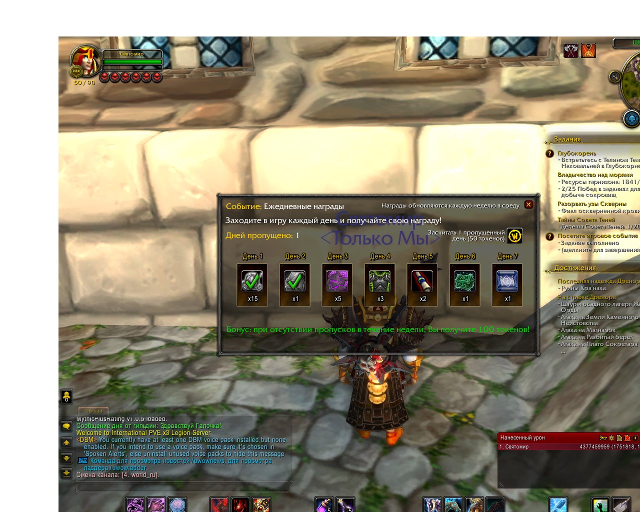 | Description | Сегодня в 9-35 по Москве не запустилось событие: ежедневные награды день 3. Написал сообщение об ошибке. Ответа нет. По прошлой теме с персонажем Велогор никто в игре так и не связался. Пришлось потратить 50 токенов, чтобы исправить якобы пропущеный день. Сейчас у персонажа Святомир похожая ситуация, только день 3. Я сейчас в игре. На одном из персонажей. Велогор или Завулон. Зачтите пожалуйста персонажу Святомир 3 день. | ||||