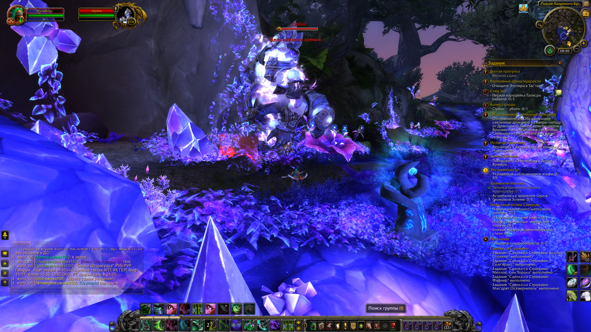 | Description | Сервер epicwow x5 legion Персонаж Pursefona В локации Покой Лазурного Крыла на Азсуне при выполнении задания "Конец голода" невозможно нанести урон боссу Орбису (https://www.wowhead.com/ru/npc=91155/%D0%BE%D1%80%D0%B1%D0%B8%D1%81), поскольку он застрял в текстурах и персонаж его не видит и не может задеть атаками. | ||||