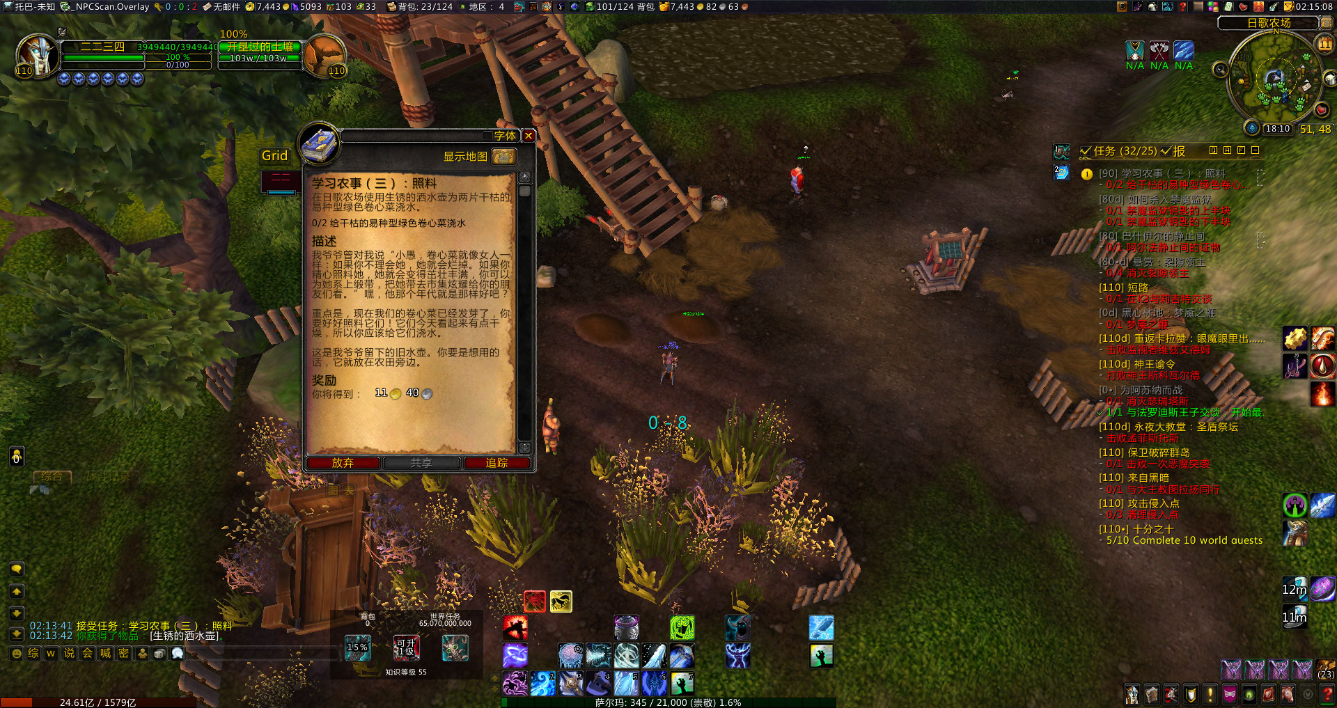 | Description | Valley of the Four Winds 四风谷日歌农场任务线Sunsong Ranch https://warcraft.wiki.gg/wiki/Learn_and_Grow_III:_Tending_Crops 我无法访问WOWHEAD http://wowhead.com/quest=30255 学习农事(三):照料:在日歌农场使用生锈的洒水壶为两片干枯的易种型绿色卷心菜浇水。 农场上没有干枯的卷心菜,无法完成任务 大概是2月左右 最近完成的角色没有出现这个 | ||||