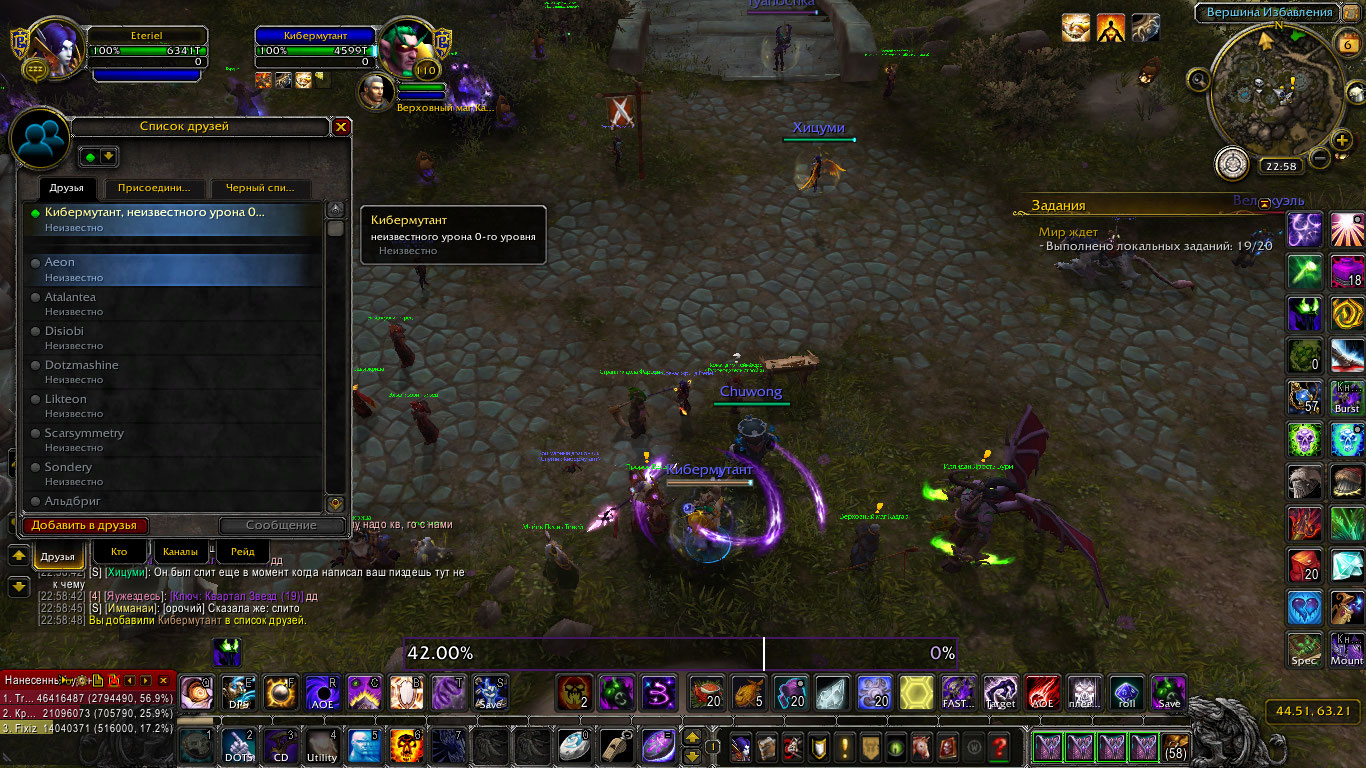 Блэк, можно попробовать добавлять друзей не в мирной локации(Даларан/Шторм), а, например, находясь в инсте и сменить локацию. Но проблема есть, могу попробовать снять видео с игрового. |