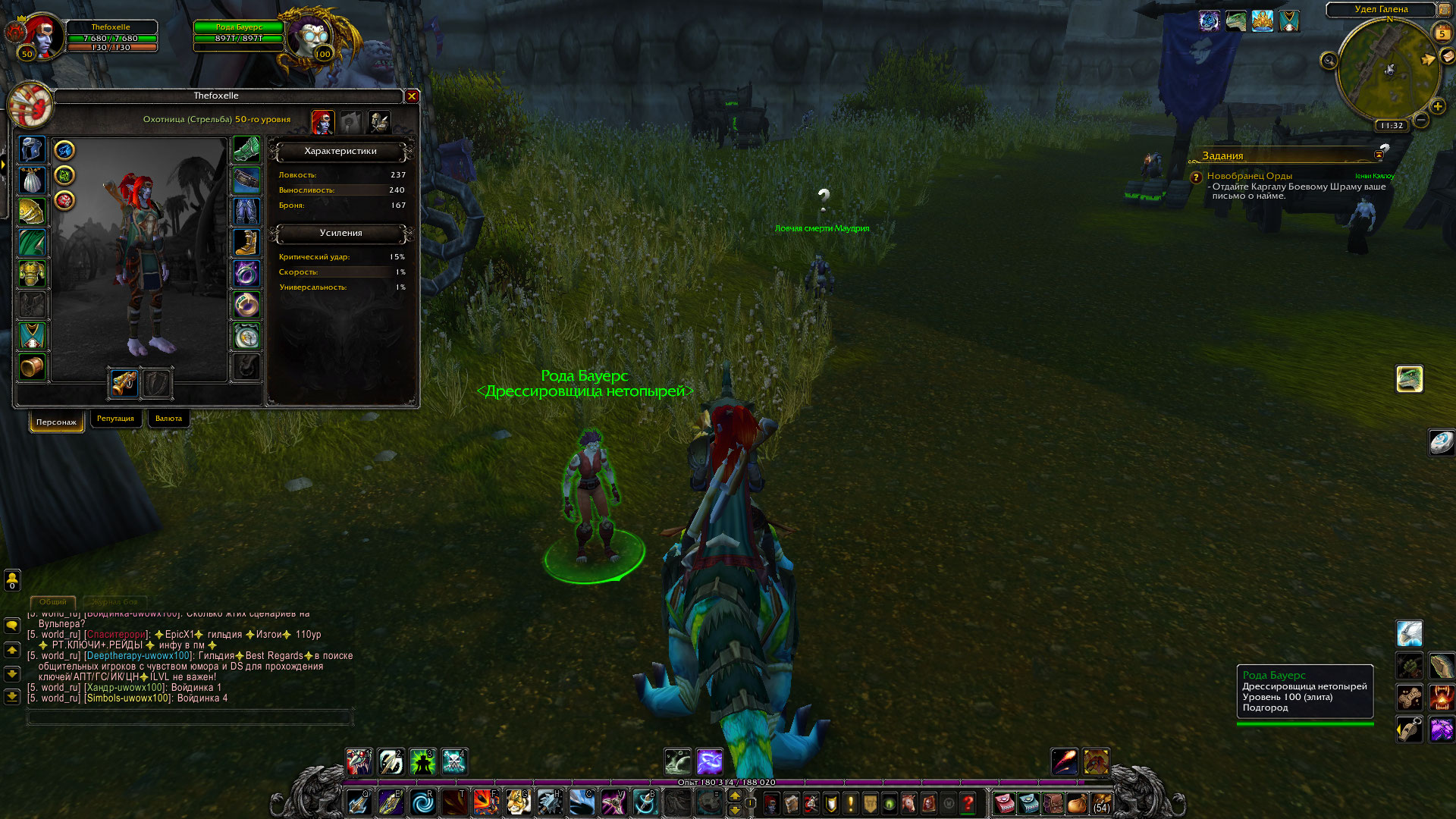 Спасибо за ответ. Прикрепил скриншот, но не вижу в нем необходимости. Суть в том, что не открывается диалоговое окно с распределителями полетов (на скриншоте дрессировщица нетопырей). При взаимодействии с НПС, последний произносит реплику, и игра условно понимает, что окно открыто, но его нет и при повторном взаимодействии с НПС реплики уже не будет. П.С. лично никакие модификации/аддоны не ставил, просто скачал клиент. WoWScrnShot_080524_133938.jpg (511,775 bytes) |