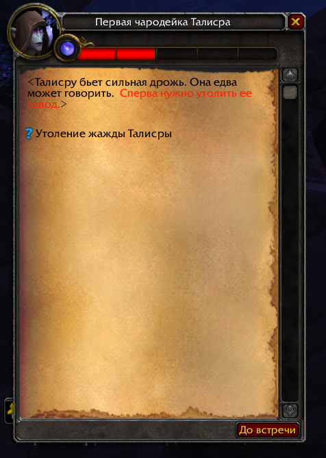 | Description | По цепочке после квеста " Подопытный номер 16 " должно идти задание " Наследие Кел'даната ". Но увы, Первая Чародейка Талисра не выдаёт этот квест. квест " Подопытный номер 16 " уже выполнен и сдан | ||||