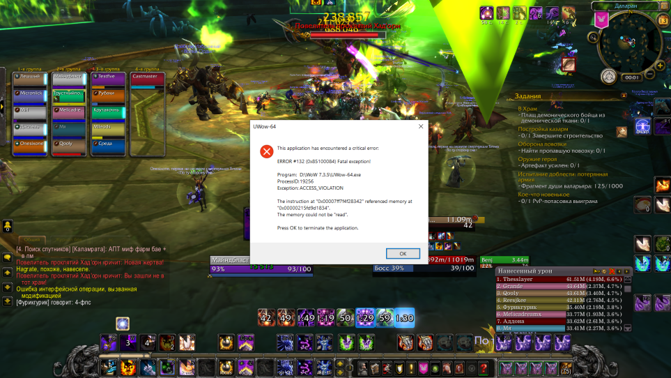 Здраствуйте, в пати с танком демонхантером каждые 20 минут точно крашит клиент на любом персонаже с ошибкой (все не помню) "read", ошибка у меня не первого, многие игроки с ней сталкивались но не кто не помнит как ее решил |