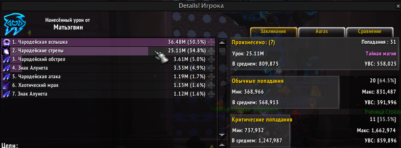 | Description | Талант [Усиление] увеличивает урон от Чародейские стрелы (на 12% за каждый Чародейский заряд) не работает Тестил урон с разными талантами и заметил, что урон от этого таланта не повышается А этот талант очень важен в данном спеке | ||||