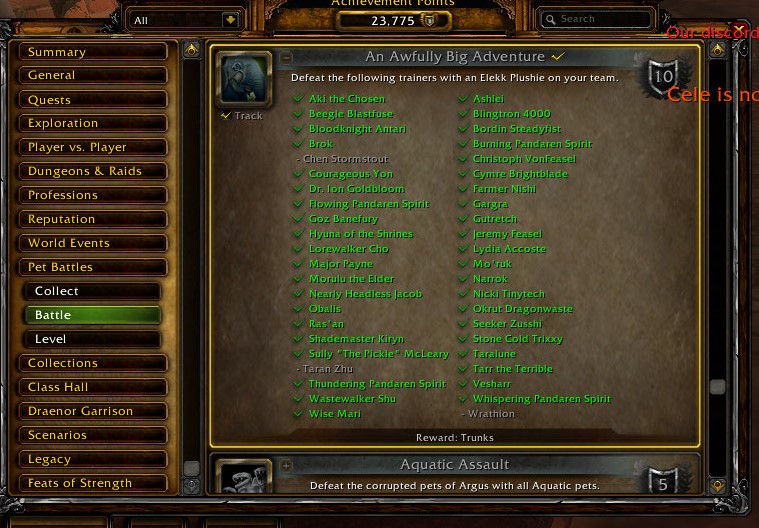 | Description | While doing https://www.wowhead.com/achievement=9069/an-awfully-big-adventure I was left with doing https://www.wowhead.com/npc=71927/chen-stormstout, but he was bugged. I couldnt start fight against him. | ||||