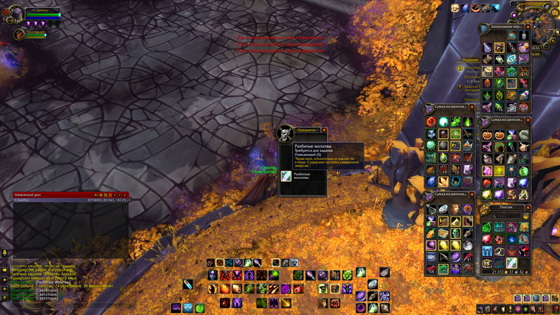| Description | Квест Молитвы Аркаана( id=47101) Квест итем на 4х засчитывает квест как завершенный, но сдать его нельзя, тк для сдачи нужно 5 итемов. 5 итем залутать не получается, тк пишет "у меня уже достаточно таких предметов". Релог. удаление кеша, исправление перса в лк не помогло. | ||||