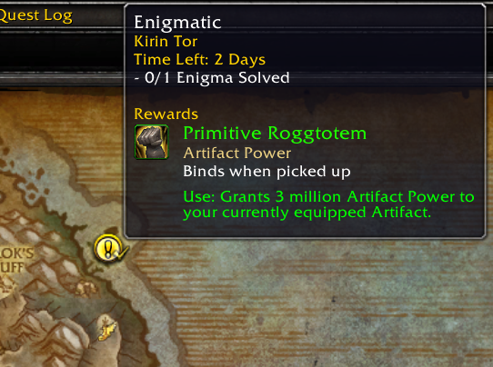 | Description | kirin tor puzzle world quests seems to be missing the puzzle box to start the event making the WQ uncompleteable | ||||