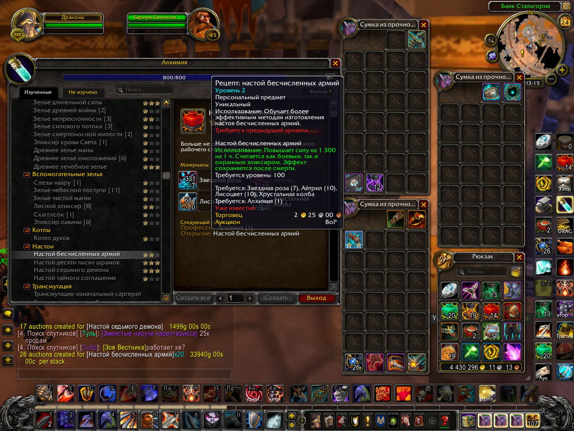 у меня изучило открытием на 2 ур настой бесчисленный армий тоесть алхимией был такой момент с настойками на стамину такая же фигня но там упал с чертоги доблести рец на 3 ур Думал после апа шанса пойду также выбью падает с утробы гер миф выпал рец как на скрине на 2 ур и я хз что делать я так понимаю мне больше рец не сможет прокнуть открытием алхимией так как уже он изучился но как на 2 ур а 2 ур реца лежит в сумке как на скрине и с босса не упадет видимо на 3 ур