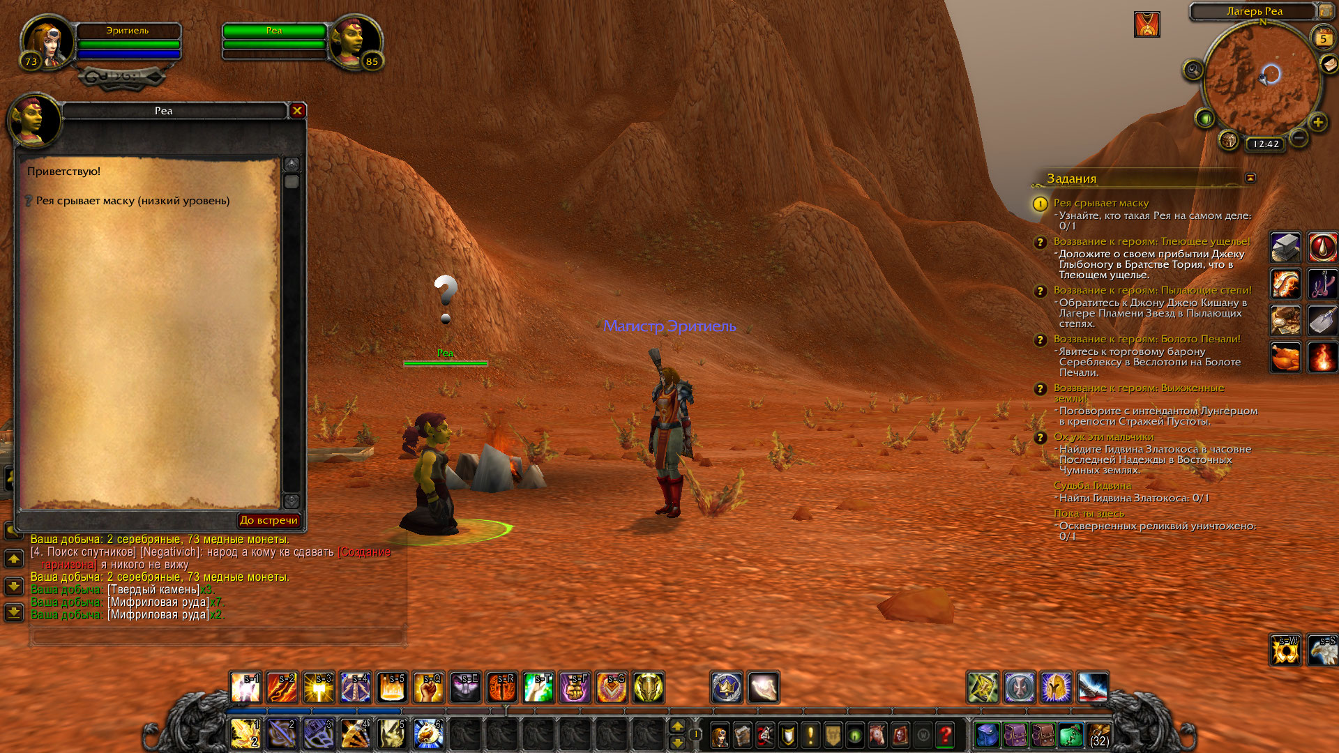 | Description | Квест: https://ru.wowhead.com/quest=27769/%D1%80%D0%B5%D1%8F-%D1%81%D1%80%D1%8B%D0%B2%D0%B0%D0%B5%D1%82-%D0%BC%D0%B0%D1%81%D0%BA%D1%83 После того как мы берем у https://ru.wowhead.com/npc=46654 квест, мы должны послушать ее историю, но скрипта нет( И квест не засчитывается. Вот пункт квеста: https://ru.wowhead.com/npc=46654 | ||||