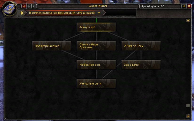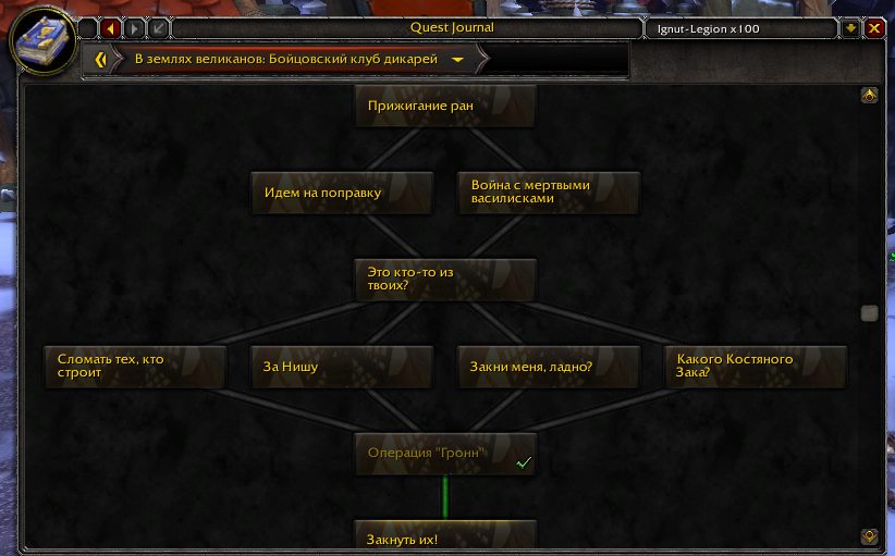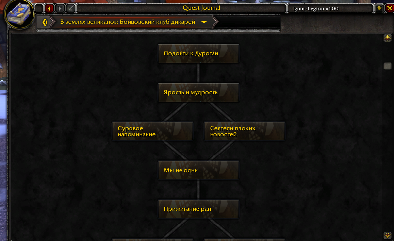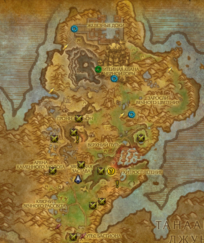 Здравствуйте, у вашего персонажа не выполнено задание https://www.wowhead.com/ru/quest=35505 , получить вы его можете у нпц https://www.wowhead.com/ru/npc=84811 , который находится либо на входе в хитросплетение вот тут; https://egammi.net/image/qVtF Либо в северной части Хитросплетения, тут ; https://egammi.net/image/qVtd Этого задания вы может быть не заметили потому что НПЦ для вашей фракции отображается как вражеский, но задание он выдаёт как положено. |