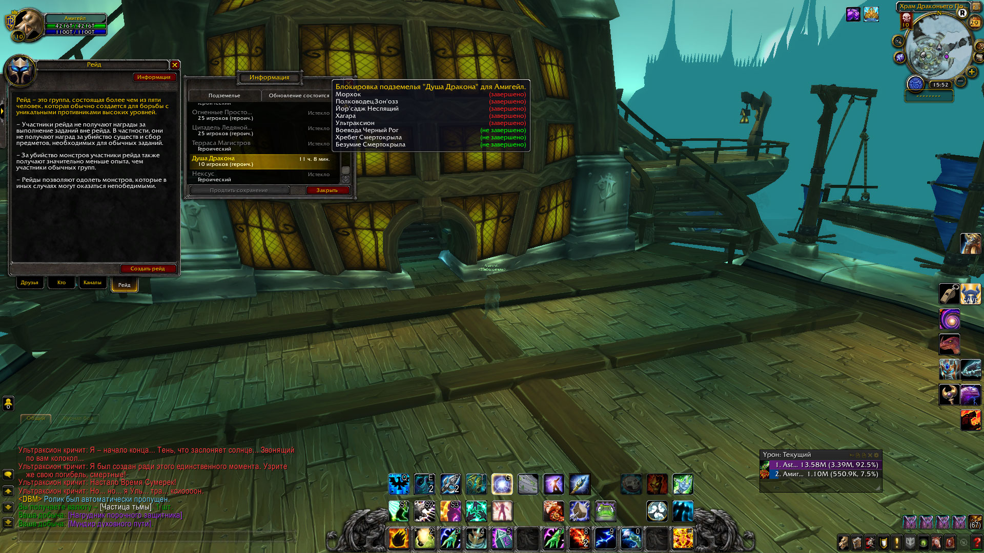 | Description | Легион х100. Игровой ник - Рогарс. Рейд - Душа Дракона. В Рейд пытаюсь сходить с 21.06.2019 по 24.06.2019. После Убийства босса Ультраксион, появляется корабль, на котором должны стоять НПЦ Человек и рядом Орк. С человеком нужно поговорить, чтобы продолжить прохождение рейда. На корабле Человека Нет. Прохождение рейда НЕВОЗМОЖНО. 28.06.2019 13:04 Игровой ник - Амигейл. Рейд - Душа Дракона. После убийства Ультраксиона в 10 Героический, НПЦ на Корабле НЕТ, Прохождение рейда НЕВОЗМОЖНО. 28.06.2019 16:20 Игровой ник - Рогарс. Рейд - Душа Дракона. После убийства Ультраксиона в 25 Героический, НПЦ на Корабле НЕТ, Прохождение рейда НЕВОЗМОЖНО. 28.06.2019 16:40 Игровой ник - Рогарс. Рейд - Душа Дракона. После убийства Ультраксиона в 25 обычный, сундук с вещами не открывается, стоит как манекен. НПЦ на Корабле НЕТ, Прохождение рейда НЕВОЗМОЖНО. После чего вышел с Рейда - Душа Дракона, обновил все подземелья, переставил туда и обратно сложность с обычки на героическую. Зашел в рейд Душа Дракона. Корабль стоит - НПЦ на нём нет. За кораблем стоят големы и вдалеке справа стоит ещё один корабль, которого там не должно быть. | ||||