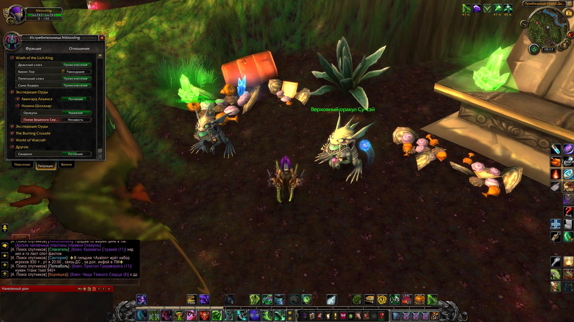| Description | НЕ могу доказать репутацию с оракулами, на скрине видно где она зависла, квестов больше нету, помогите пожалуйста. Из-за этого не могу взять Яйцо у интенданта на маунта. Последний квест был, когда оракул Су-сей дал мне мячик, я вызвал моба и он дал квест. После мяч я удалил. Квестов он больше не давал. | ||||
