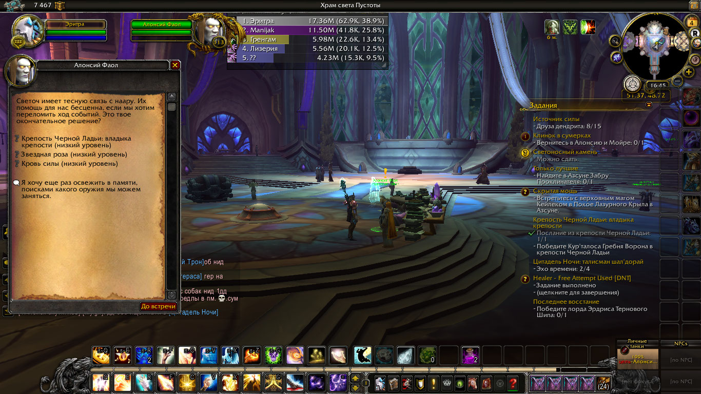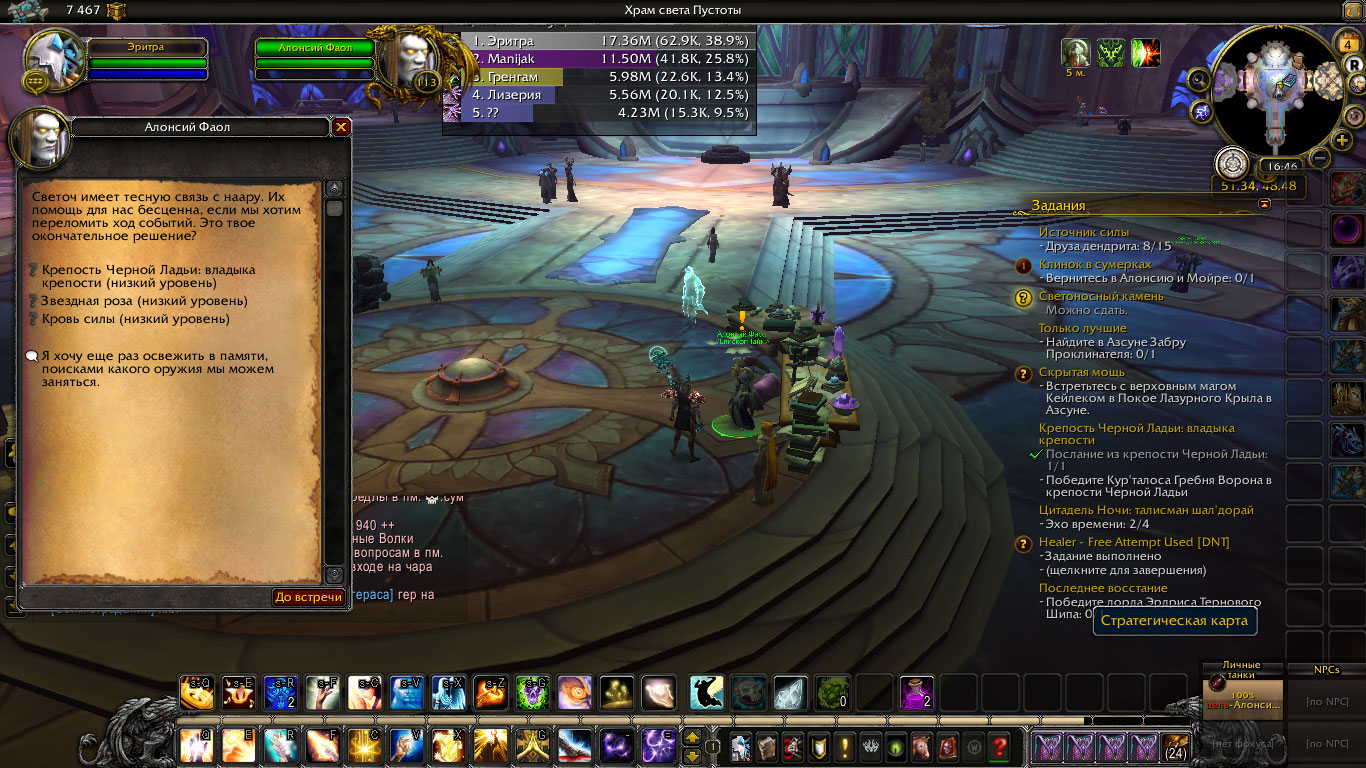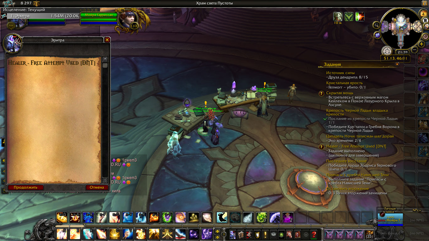 | Description | Квест https://ru.wowhead.com/quest=43373/только-лучшие не работает. Прихожу к НПС(он там есть) нажимаю на него ЛКМ(ПКМ) и ничего не происходит. Так же квест Светоносный камень я получил 50 каменй но не могу сдать(нпс не дает сдать). Квест клинок в сумерках выполнил полностью, но не могу сдать( прихожу в оплот и ничего не высвечивает) скрины прилагаю. Я подожду сколько нужно если починятся квесты. | ||||
