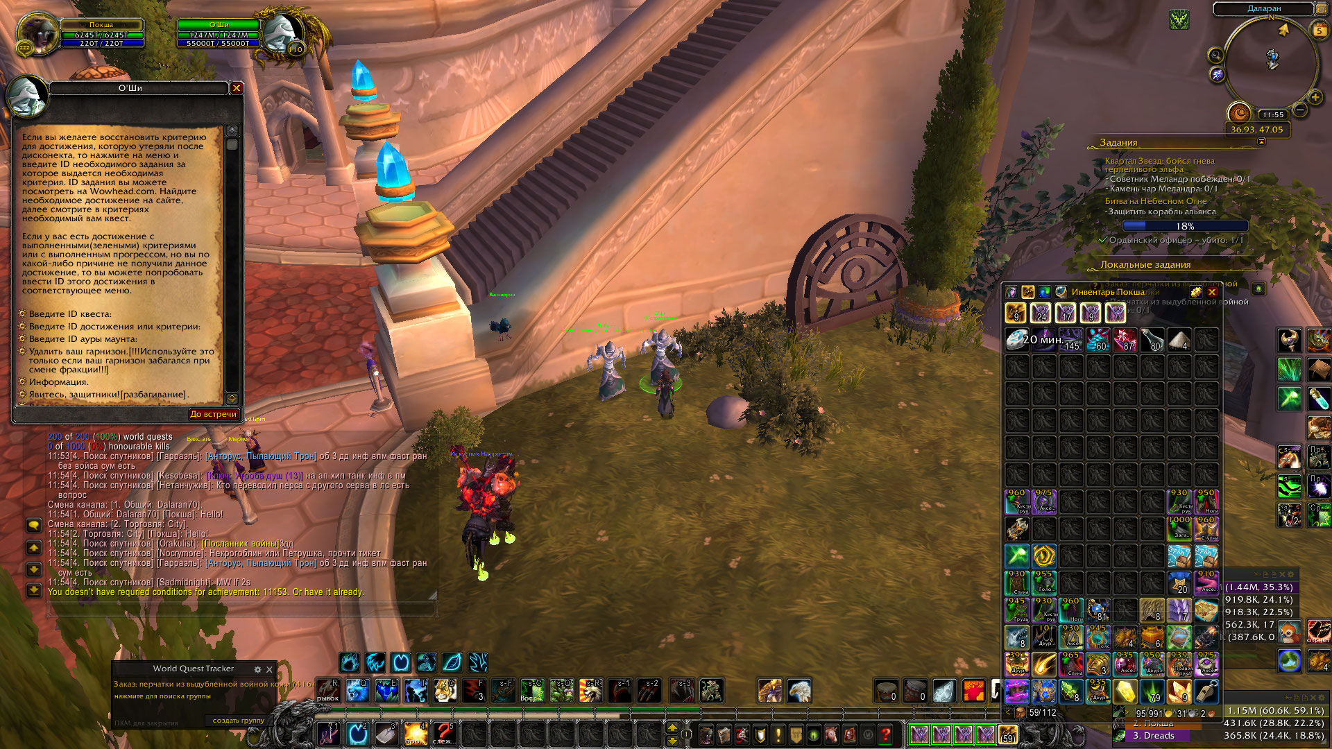 | Description | Сделал скрытый облик очень давно. С тех пор сделал полеты на берегу(Там 100 локалок надо было сделать), а счетчик как был 0, так и остался(Скрин 1). Полагаю, что он не отображает реальной картины. Посмотрел в интернете. Ачива с id = 11153 открывает третью расцветку скрытого облика. Как видно на (Скрин 2) игра считает, что данное достижение я получил, то есть выполнил 200 локалок... Красным обведены макрос и его результат. А ниже я скачал специальный аддон для отслеживания прогресса, как видим он тоже говорит, что я должен был получить ачиву и облик вместе с ним. На (Скрин 3) я пытался вбить id данной ачивы в исправлятор(или как там его зовут), но получил в чате инфу, что я либо не соответствую критериям ачивы, либо она у меня уже есть. Из всего выше сказанного, я считаю, что ачиву я получил, но сам облик доступен мне не стал. Можно с этим что либо сделать? Не уверен, что остальные расцветки будут работать корректно, ибо там счетчик тоже не идет... Скрины: http://egammi.net/image/SRhZ http://egammi.net/image/SRhl http://egammi.net/image/SRhT | ||||