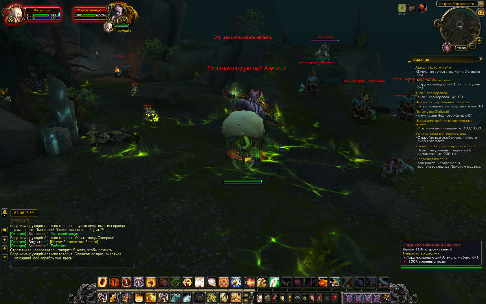 Сделала, как сказал человек выше, я отменила задание на 4 точки вторжения и получила задание дальше. Но теперь новая проблема: требуется убить лорда-командующего Алексиса, а его даже ударить нельзя. Я уже начинала делать задание заново, не пропускала ролик появления, но ударить его нельзя, мои друзья так же не могут этого сделать. WoWScrnShot_071119_010912.jpg (381,519 bytes) |