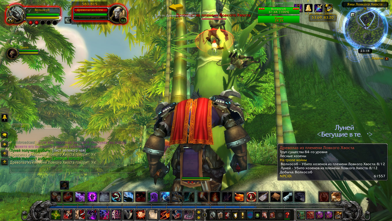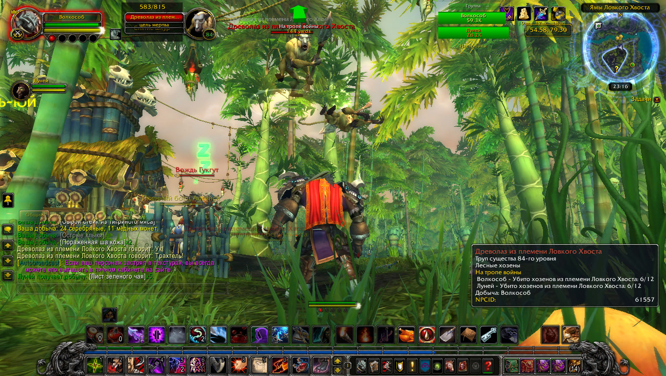| Description | https://ru.wowhead.com/quest=29559/свободу-нашим-братьям - имеет ряд серьёзных проблем. Несмотря на то, что предыдущий репорт №0003409, созданный другим пользователем закрыт как "решена" - квест по прежнему не работает как должно. 1. https://ru.wowhead.com/npc=61557/древолаз-из-племени-ловкого-хвоста - стоят по двое, точнее, один якобы висит на ветке, в метре над землёй, второй стоит в том же месте на земле. После убийства того, который стоит на земле - его труп внезапно оказывается в 4-5 метрах над землей. Достать до него невозможно, соответственно нет возможности забрать лут. Второго нельзя атаковать в принципе, при том, что визуально он пытается агриться на игрока. Но атаки ближнего боя - "Нельзя применить к этой цели", а дистанционные атаки - "Вне зоны действия". ID у обоих NPC одинаковые. 2. https://ru.wowhead.com/item=74260/бамбуковый-ключ выпал примерно спустя 50-60 убийств квестовых NPC. 3. https://ru.wowhead.com/npc=55201/пленный-цзинь-юй и https://ru.wowhead.com/npc=55490/пленный-боец-альянса стоят в клетках, но квест итем использовать ни на них ни на клетках нельзя. Единственный вариант выполнить квест - убить данных NPC(странное понятие свободы...), при том, что убить можно только двух NPC со всей локации. Они стоят не в клетке. Остальных атаки ближнего боя - "Нельзя применить к этой цели", а дистанционные атаки - "Вне зоны действия". | ||||