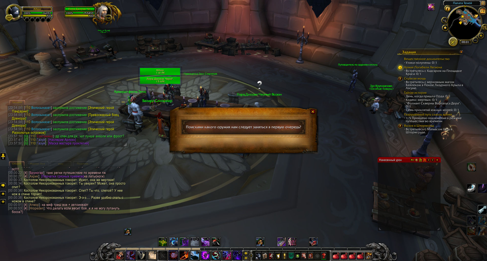 DescriptionДелал цепочку квестов на арт, во время сценария у меня забагалась цепочка и я решил отменить кв и начать его заного. В итоге не могу получить квест так как нпц Гарона Полуорчиха не стоит у штормграда, а в оплоте у Лорд Джорах Черный Ворон я не могу выбрать арт чтоб начать всё заного.