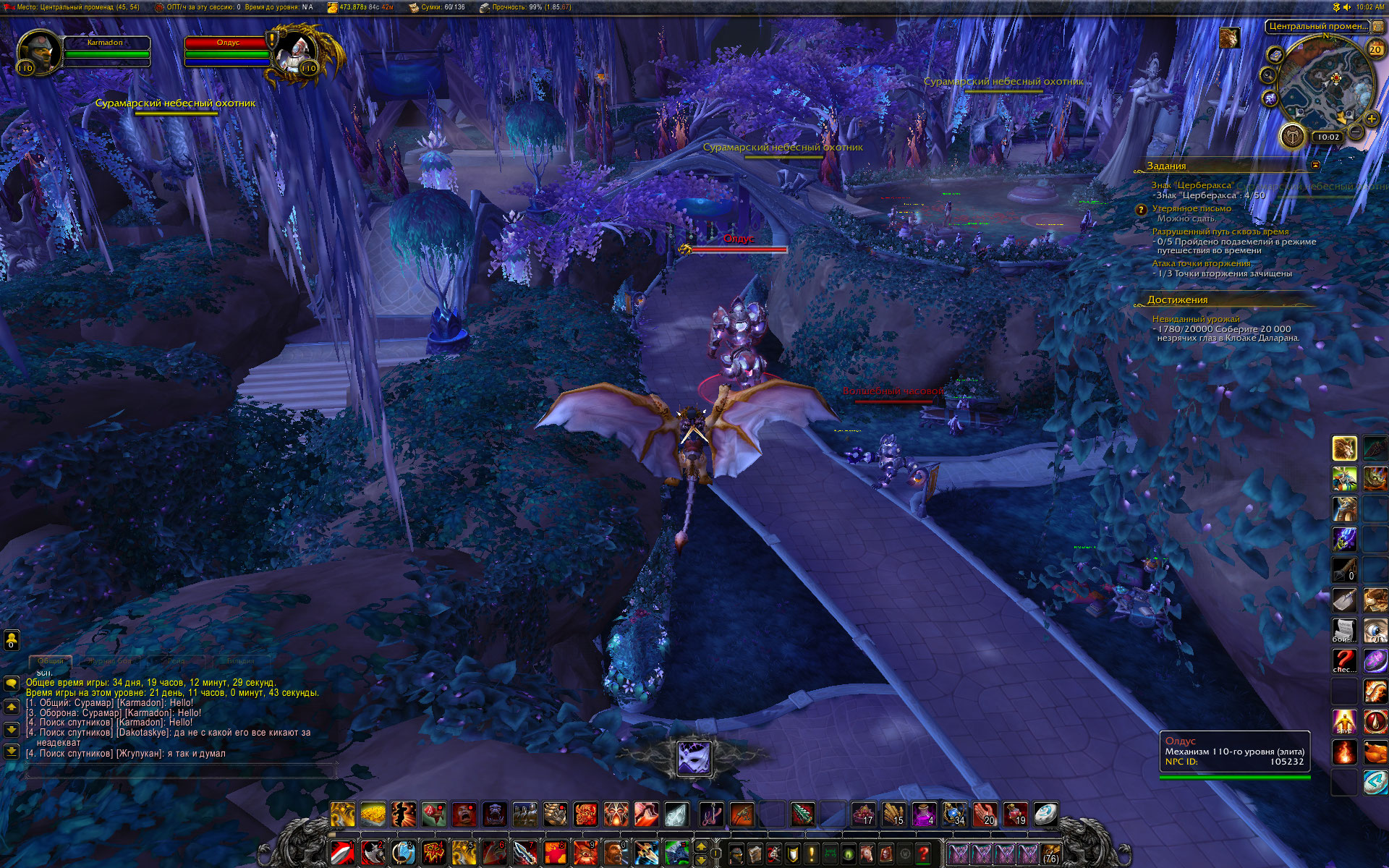 Здравствуйте! Создал нового персонажа и обнаружил моба https://ru.wowhead.com/npc=105480/олмур гуляющим по Сурамару https://ru.wowhead.com/npc=105232 да, пропал в фазу. Назначил на разработчика |