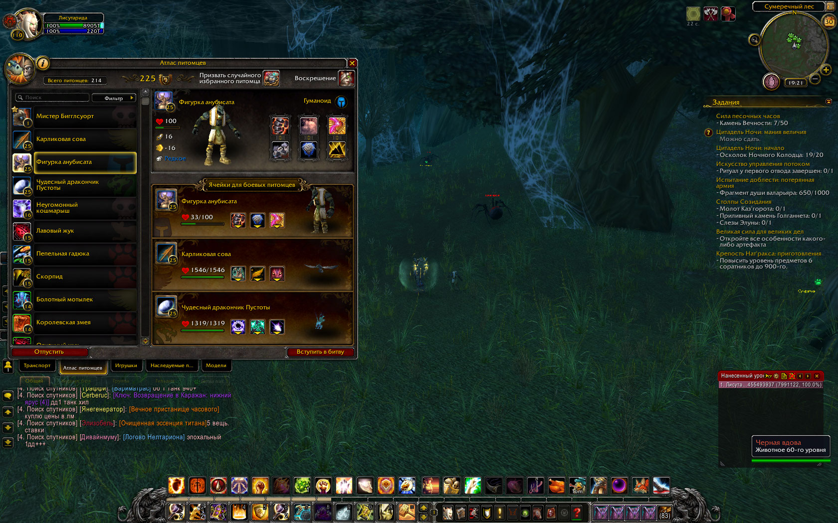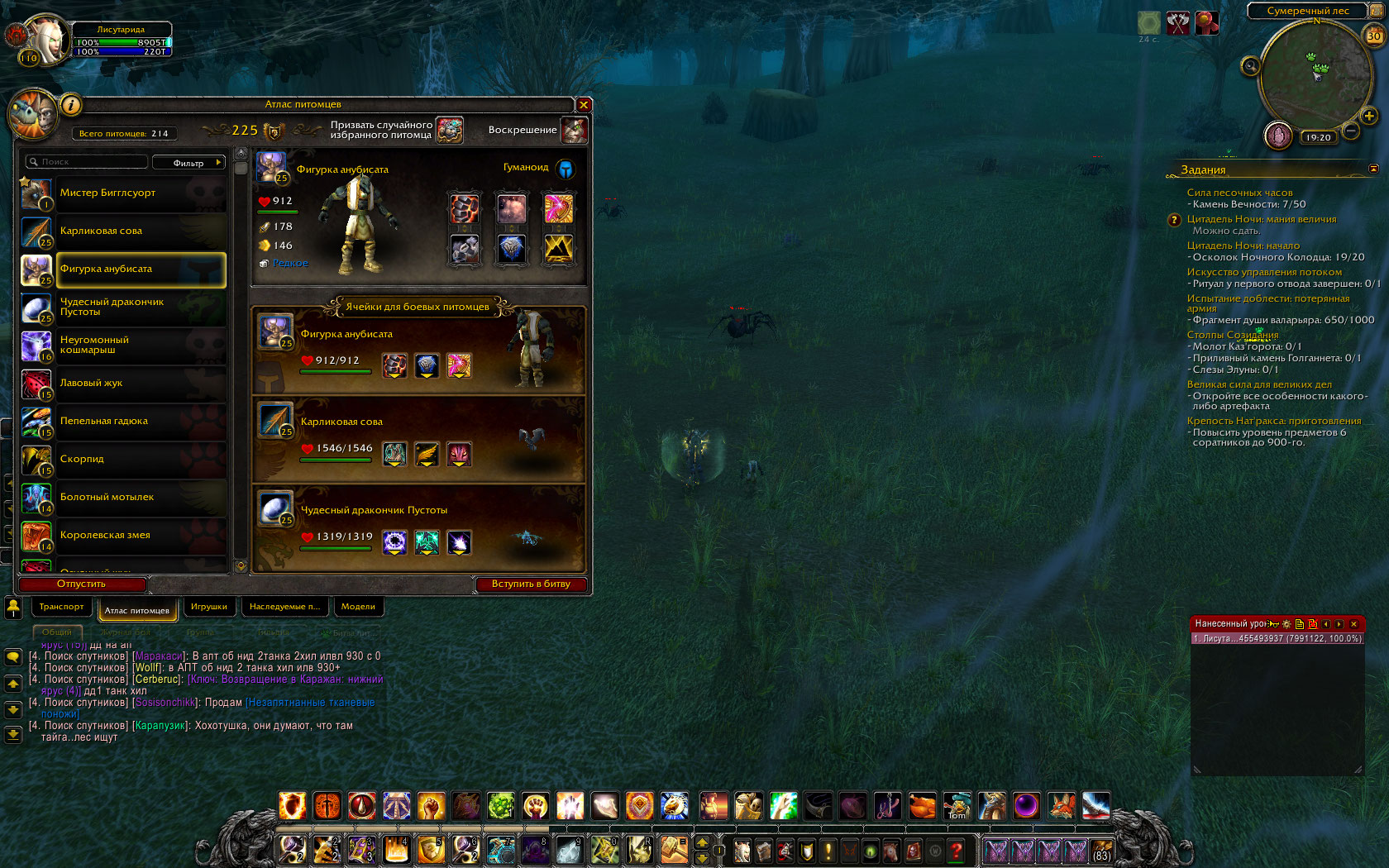 | Description | Повысила питомца Фигурку анубисата с помощью Идеального тренировочного камня для питомцев, который купила в Даларане у Серр'ы. Во-первых, количество здоровья у питомца намного меньше чем должно быть (912 вместо 1725). Во-вторых, когда вступаю им в бой, то у питомца становится 100 единиц здоровья, после боя здоровье назад не возвращается. | ||||