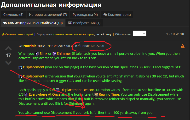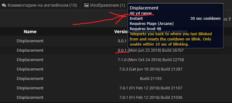4. Все пруфы в ченджлоге на вовхеде http://www.wowhead.com/spell=195676/displacement#changelog