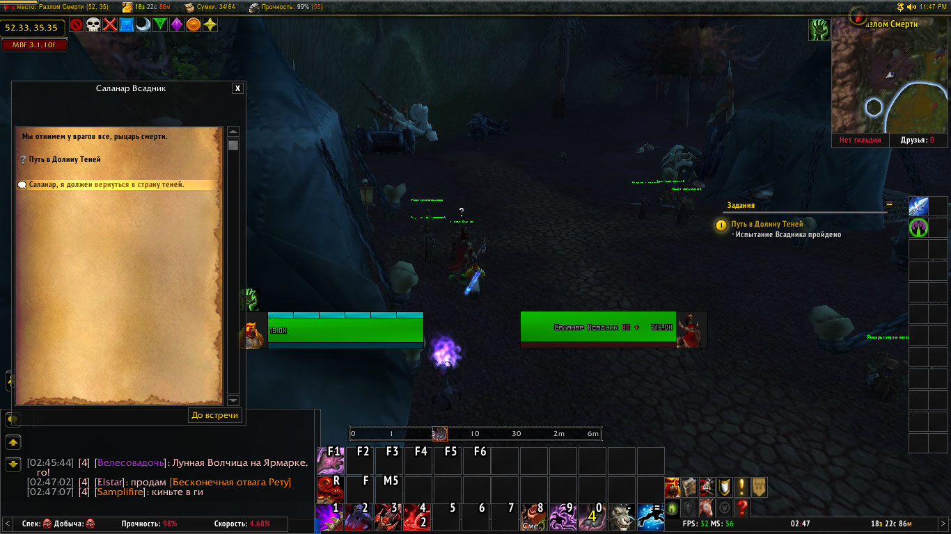 | Description | При выполнения цепочки квестов за ДК дошел до задания "Путь в долину теней", НПС дающий квест не отправляет в мир теней где нужно забрать коня, дальнейшее выполнение квестов не возможно, персонаж просто застрял в акерусе. | ||||