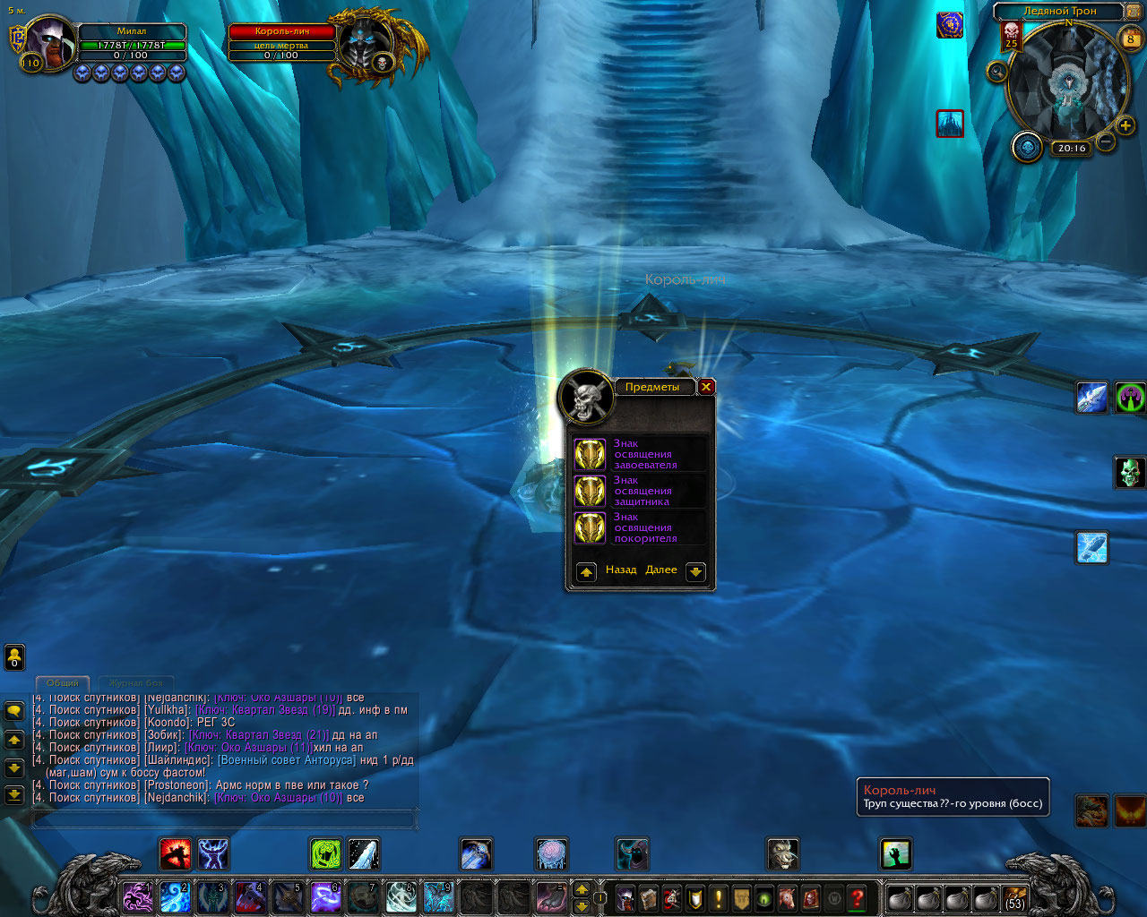 Astorath, все дибилы один ты умный, а остальные тупые. Признаюсь, забыл, но вот тебе комментарии игроков с вовхеда. Я сдал ласт квест, не взяв коробки, затем пришел к трупу лича, коробки естественно там не было. Что можно сделать? близы вернут коробку? 3 archi1284 2012-06-08 (Обновление 4.3.4) Убить ещё раз лича в 25ппл режиме (можно нормал), если коробка не была вами слутана, то она выпадет. |