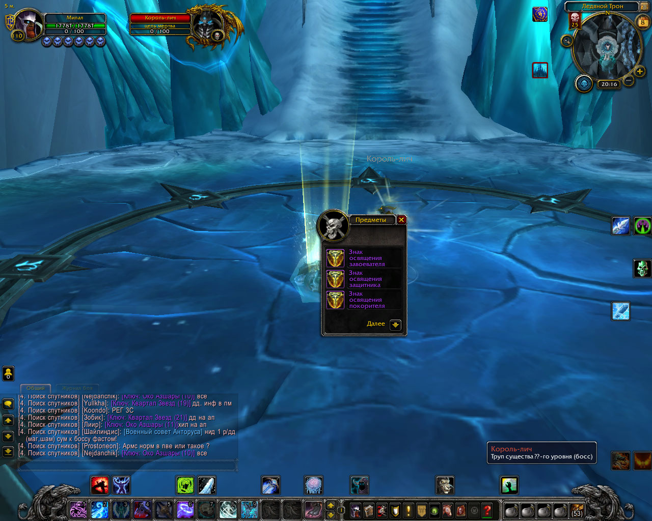 по этому если глупый игрок убил лича в 25об, сдал квест Последняя битва Короля-лича. то при последующих убийствах он и не должен получать сундук. почему? потому что он идиот и сам себе запорол получение предмета для квеста. на ЛК Blizzard сделали как минимум еще 6 квестов с такими подлянками. 3 из них ломают получение Хранителя Мудрости, вот например такой предмет https://ru.wowhead.com/item=36742/ получается только во время выполнения квеста https://ru.wowhead.com/quest=12004 дроп не 100% даже на офе. и если игрок не знает об этом нюансе то теряет цепочу из 16 квестов. и как минимум еще 2 ачивы. p.s. тестер если ты делал всё точно так же как игрок, то поздравляю ты тоже сам себе запорол получение предмета из-за невнимательности. |