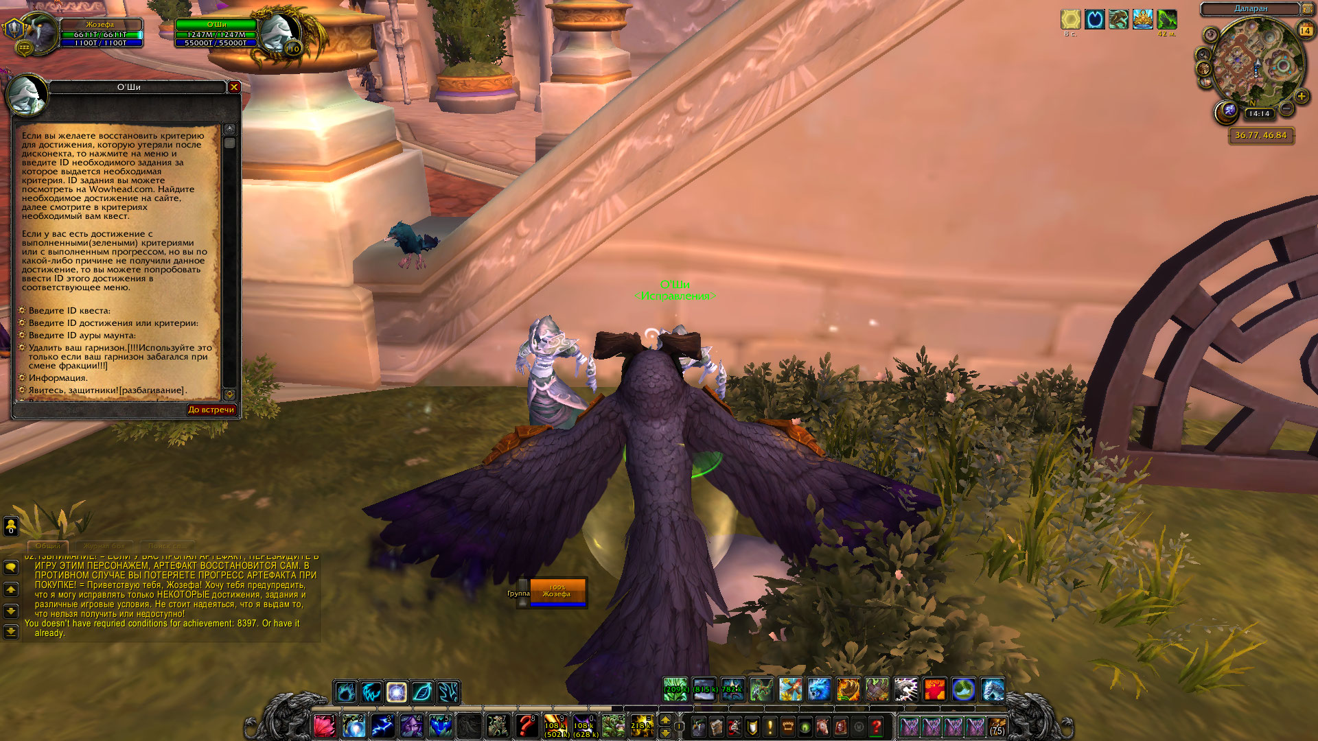 О'Ши мне ничем не помог, пишет что для достижения нужны все условия (а моя кошка-талисман, нужная для этих критериев, так и не отмечена в списке критериев). WoWScrnShot_081419_141410.jpg (527,165 bytes) |