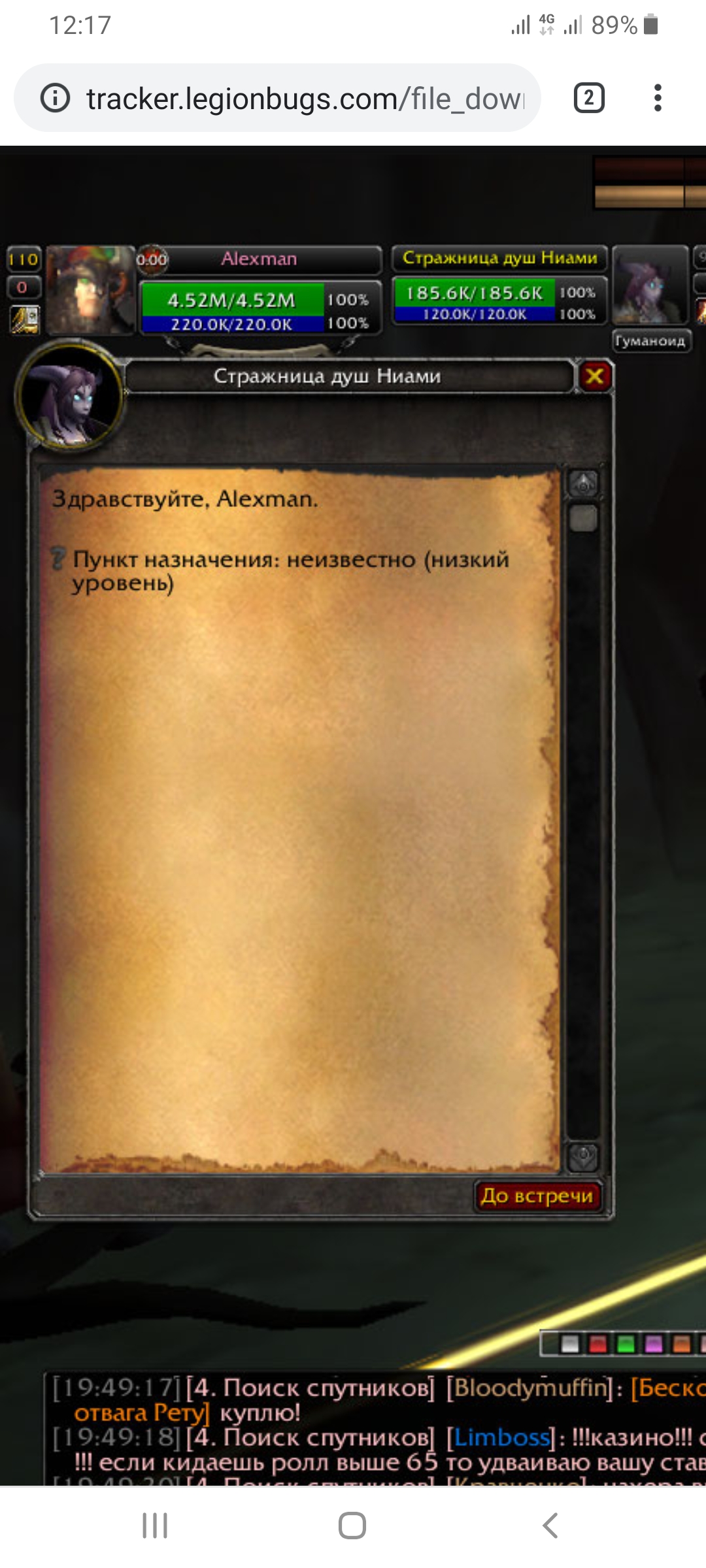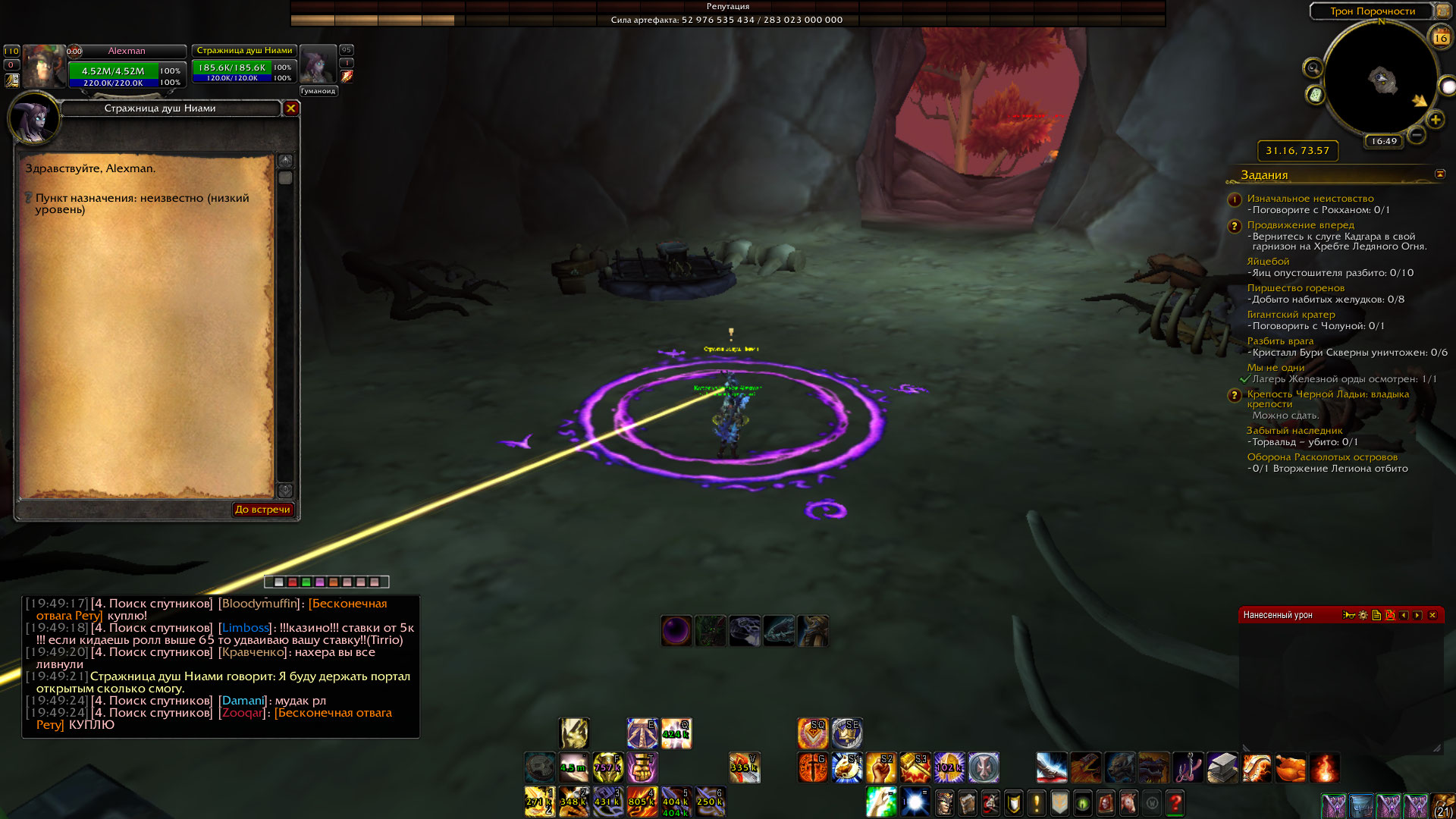 | Description | https://ru.wowhead.com/quest=34564 не работает, у нпс показывается как уже взятый, но не сдается не выполняется, портал нажать нельзя, преквест сделан https://ru.wowhead.com/quest=34157 видео как должен работать https://www.youtube.com/watch?v=6_72hMa8hWI&feature=youtu.be последний кв для ачивки дренора https://ru.wowhead.com/achievement=8919 | ||||