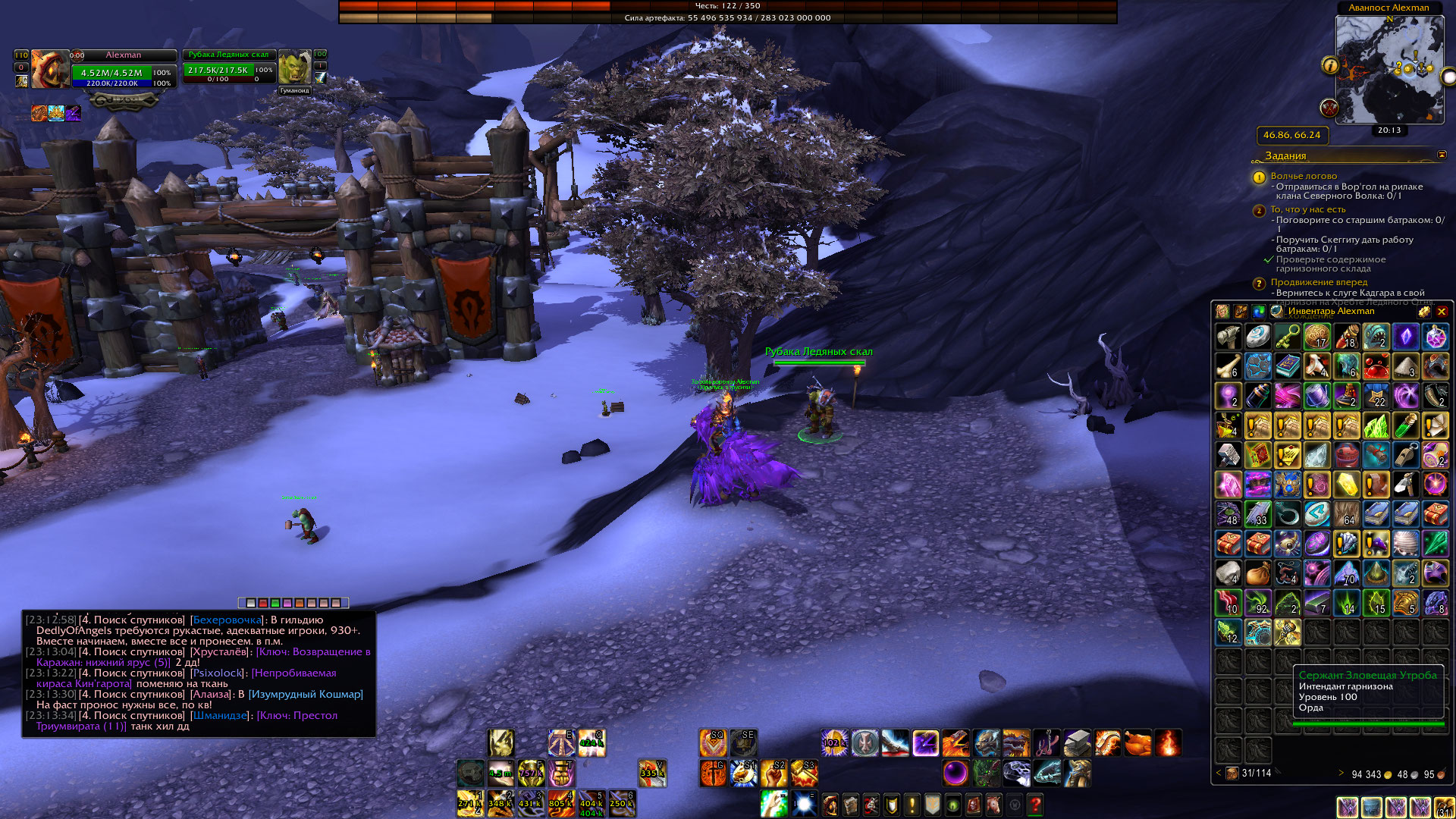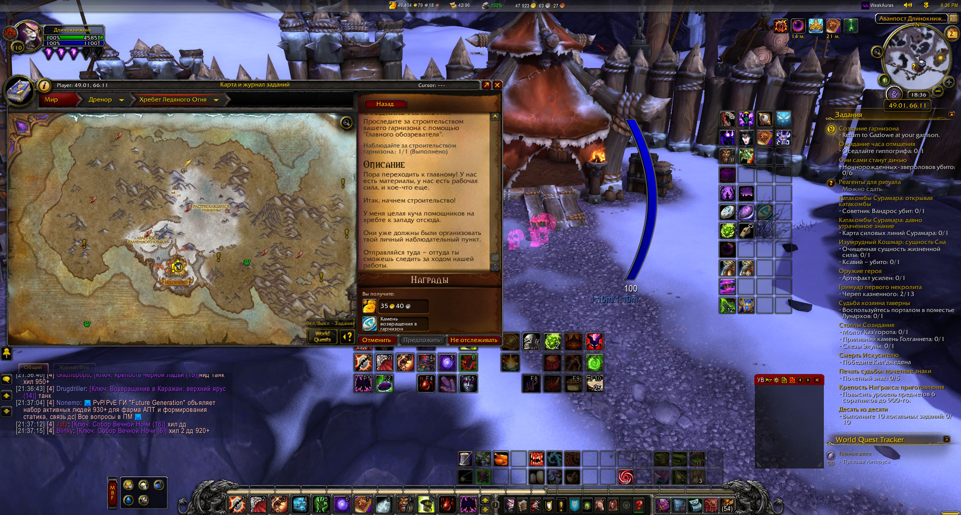 Установлена вторая часть обновления для новой системы гарнизонов и оплотов, исправлено множество проблем, а так же найдены причины который приводили к нестабильности ядра от новой системы. Создал нового перса на тесте за орду, можно теперь пройти все задания по цепочке до задания https://ru.wowhead.com/quest=34378/establish-your-garrison Тыкаешь на бинокль, создаётся гарнизон, даже пару нпс в нем есть ( не пропадают) но сдать задание нельзя нет нпс https://ru.wowhead.com/npc=78466 при релоге снова пустой гарнизон. Пока так |
