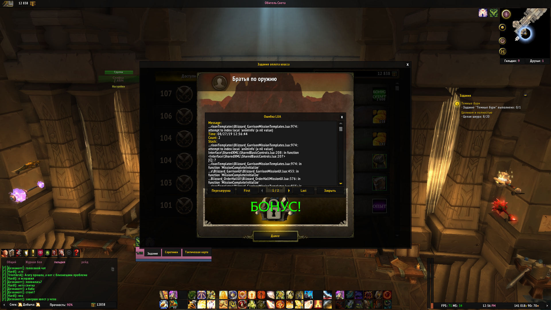Соратников нет, отрядов нет, нет квеста на них.... Окно после ребута появляться! но ошибка... пробовал и без аддонов... все равно одно и тоже. |